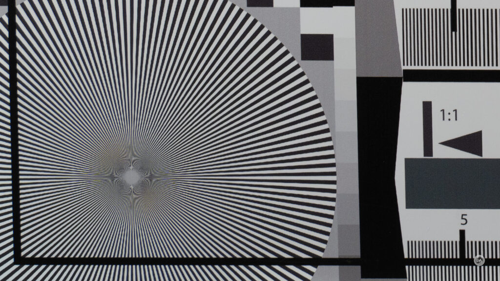 Testing for longitudinal chromatic aberrations (LoCA) showed no issues at the various focal lengths I tested at. Here’s a look at 125mm on my test chart.
