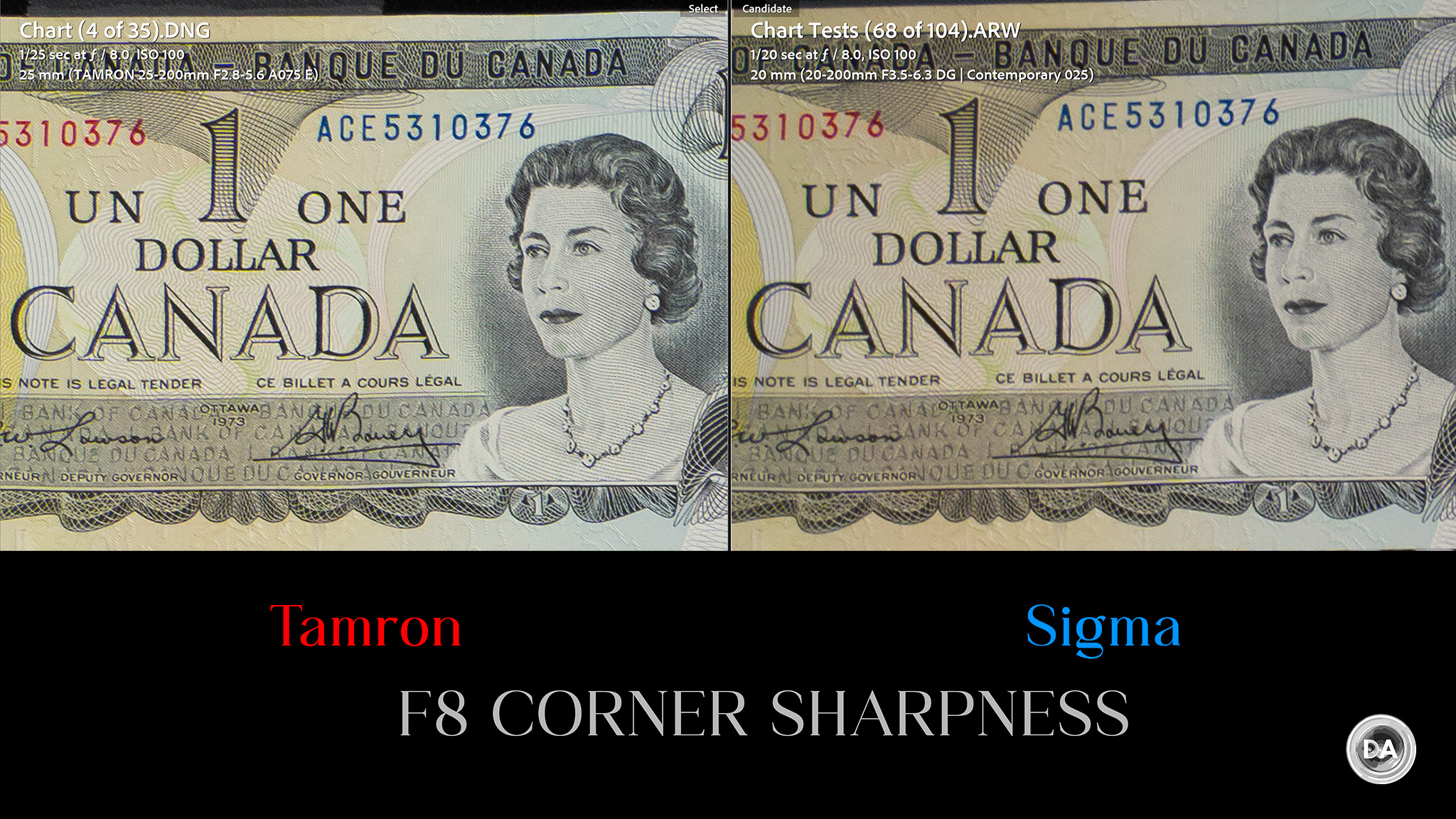 This helps in an area of weakness for the Sigma. I found that corners didn’t really sharpen up to good levels when stopping it down on the wide end. You can see a pretty obvious difference between the Tamron and Sigma at F8: