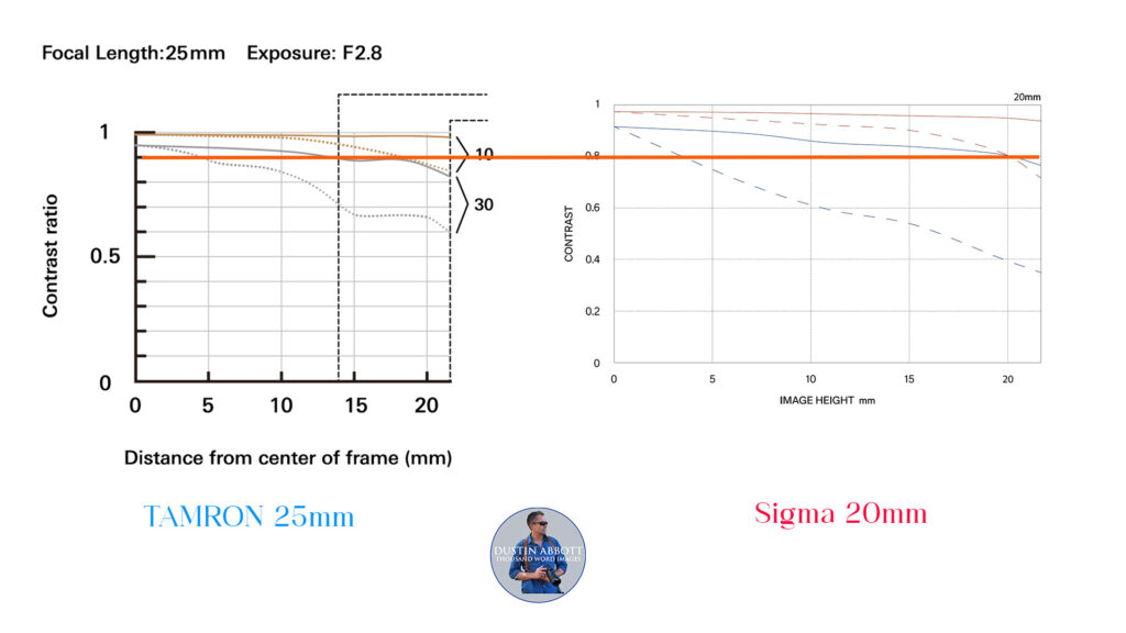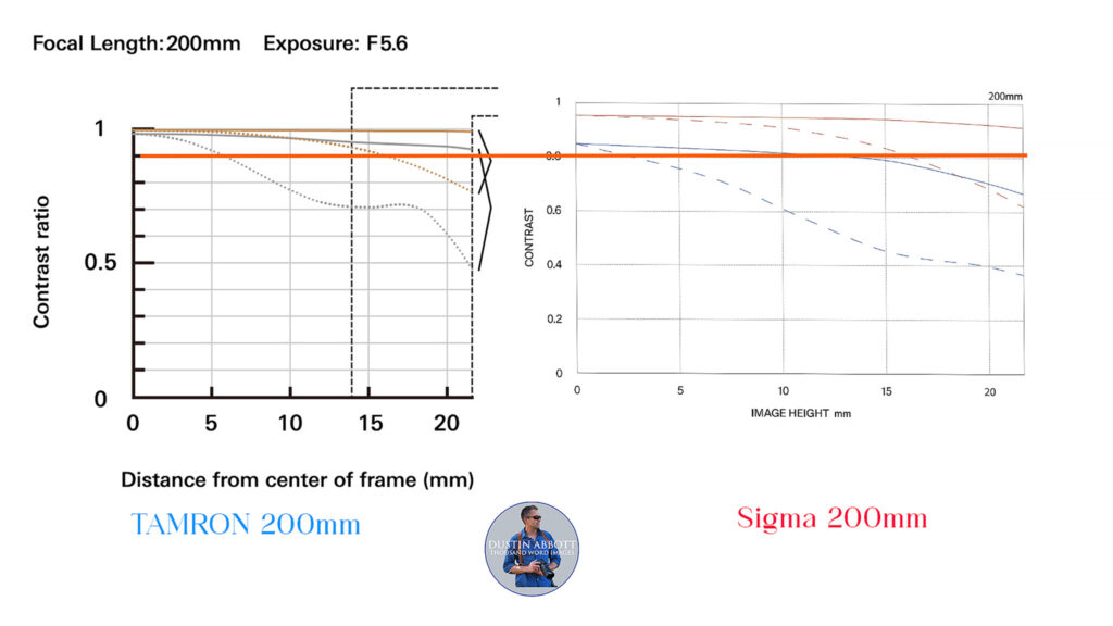 The Tamron 25-200mm VXD features an optical design of 18 elements in 14 groups. While I haven’t see a specific element breakdown, I do know that includes GM (Glass Molded Aspherical), LD (Low Dispersion), and XLD (eXtra Low Dispersion) elements. As with the 28-200mm, the MTF shows a surprisingly strong performance on both ends of the zoom range.