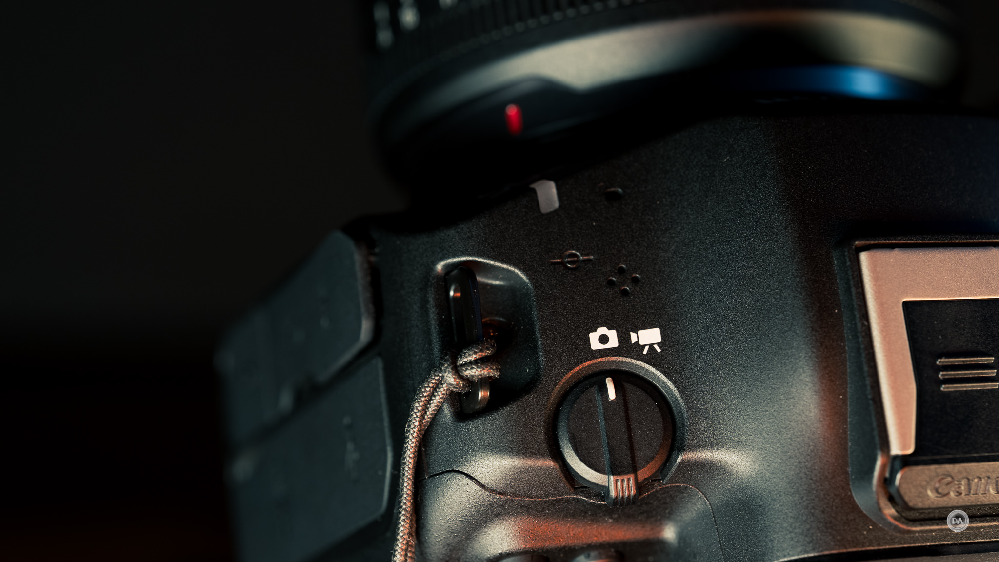 On the left side of the viewfinder is the Stills/Video switch. I like having this type of control as it does allow you to have a completely different setup for your video controls, including a separate customization set for buttons and wheels. Because my own Canon camera (R5) has the on/off toggle there, I still make mistakes periodically and hit that toggle when I want to turn the camera on and off, but that is more of a “me” problem for having what is now an older Canon camera.