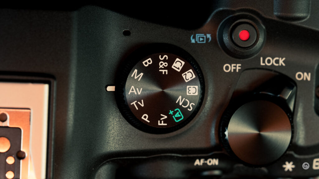 On the right side of the top plate there is a mode dial along with the record button and an M-Fn button that can be customized to a variety of functions. Canon’s higher end cameras have a secondary LCD on top, but I actually find that the old-fashioned mode dial is still the fastest way to get to different functions. There are a wide variety of options on the mode dial, including three different custom configurations.