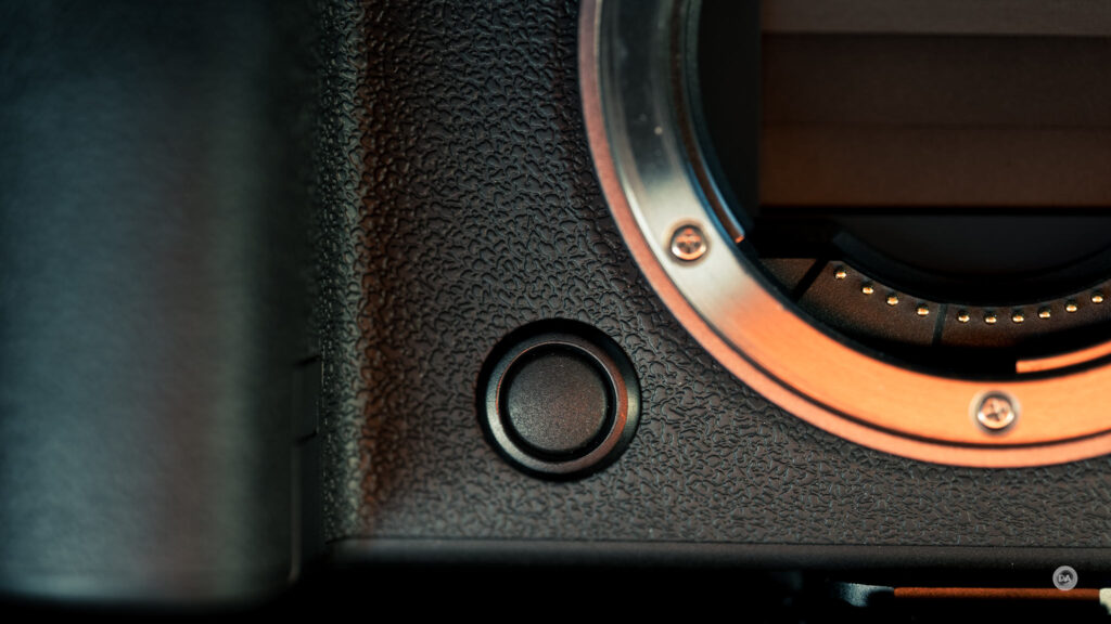 The front of the camera has just two “buttons”: the lens release button to the left side of the lens mount and what used to be the “depth of field preview” button on the right side. While “depth of field preview” is still the default value for this button, it is a customizable button that you can assign any value to.