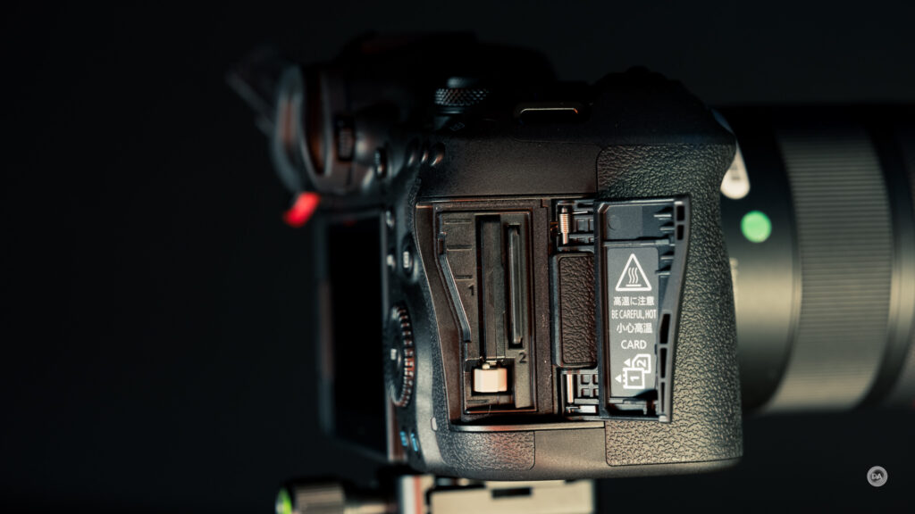 On the right side of the camera lies the memory card slots, which are covered by an actually door that opens and closes with precision by sliding it towards the rear of the camera where it then releases and opens wide. The upgrade here is that instead SD/SDHC/SDXC slots that are UHS-II compatible for increased speed we have one (much) faster CFExpress Type B slot along with one SD slot. This definitely helps data to flow faster for both the buffer depth (for stills) along with enabling more robust video recording specs.