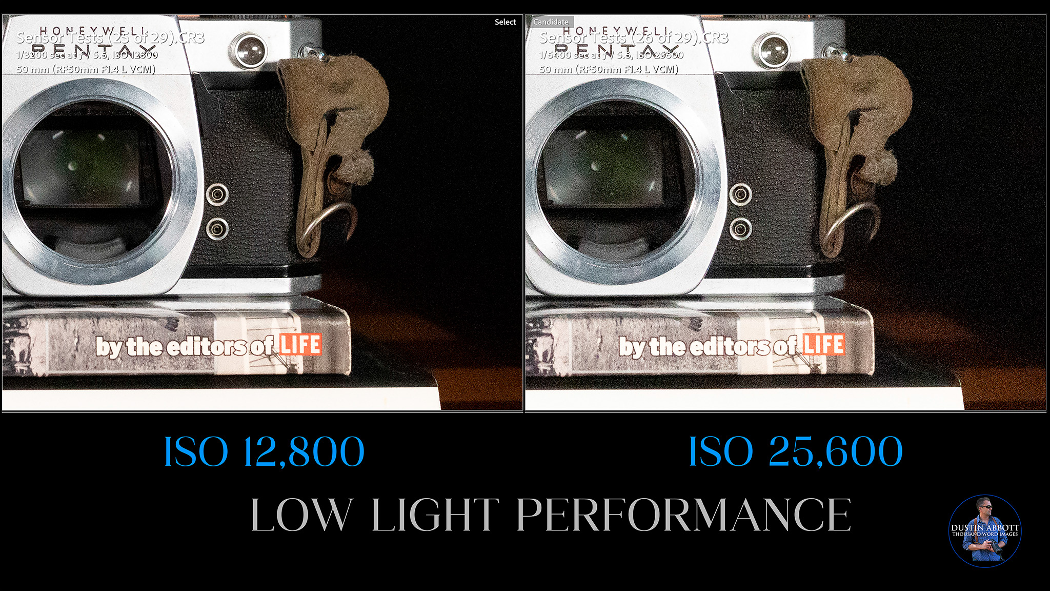 While the gains in dynamic range are not significant, the win for Canon is that they have managed to increase the resolution while also giving a slightly better low light performance. The native ISO range here is from 100-64,000, expandable to 50–102.400. I typically avoid the expanded ranges altogether, and, for that matter, prefer to stick at 12,800 as an upper limit with most cameras. Can the R6 MKIII make me comfortable with going higher?