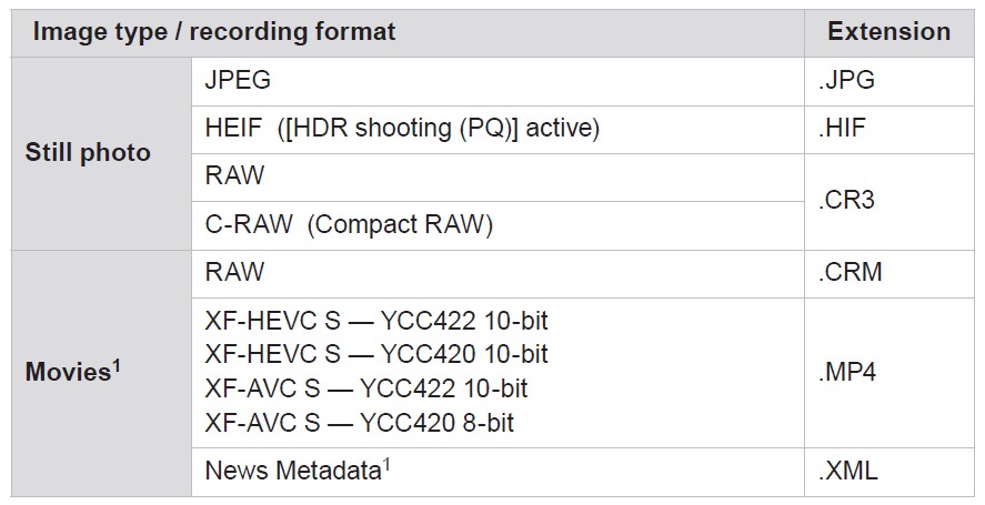 I strongly prefer the 33MP resolution point over the lower 24MP resolution of the second generation or 20MP of the first generation R6. File options include RAW, C-RAW, JPEG, and HEIF formats. Here’s a breakdown of the various aspect ratios and dimensions available along with the average file size for each.