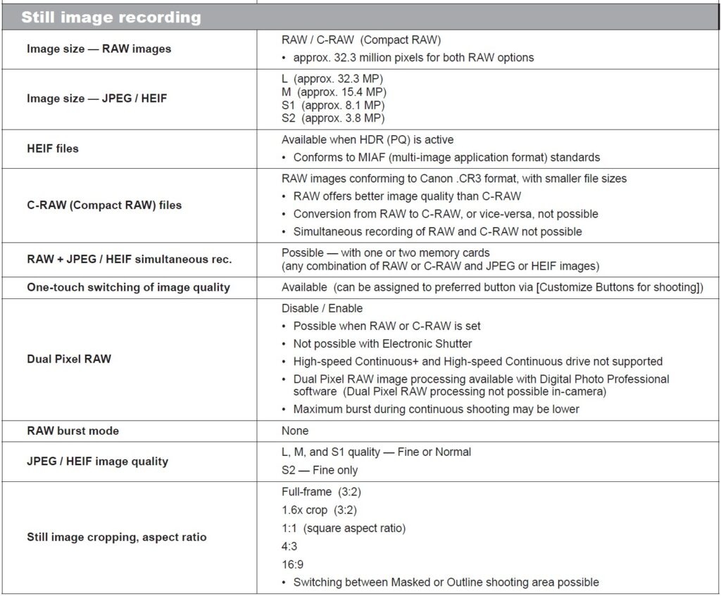 - Port doors still use annoying rubber flaps instead of proper hinged doors APS-C crop drops to only 12.4MP (worse than Sony’s 33MP bodies) due to Canon’s 1.6× factor