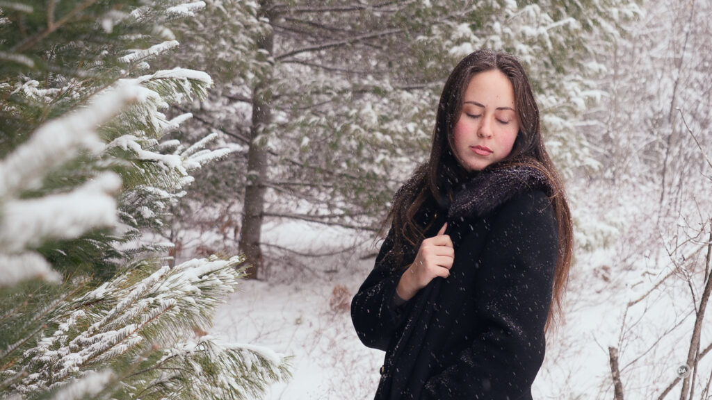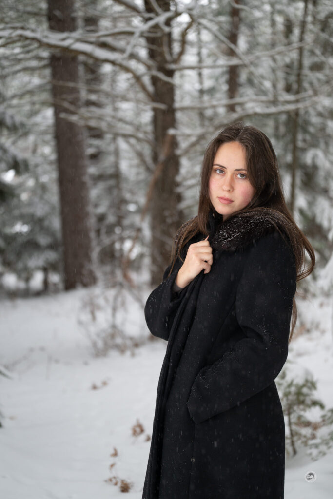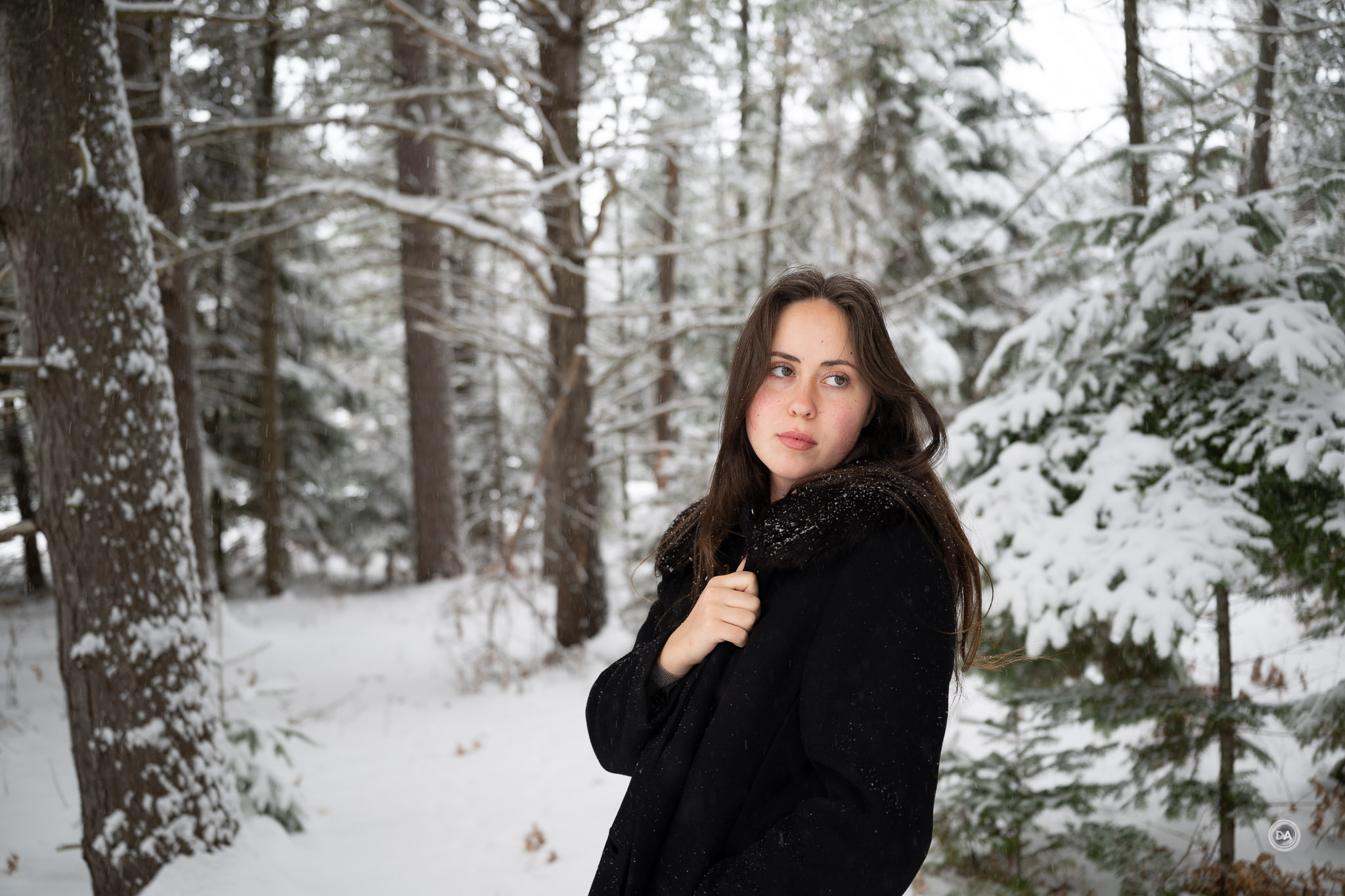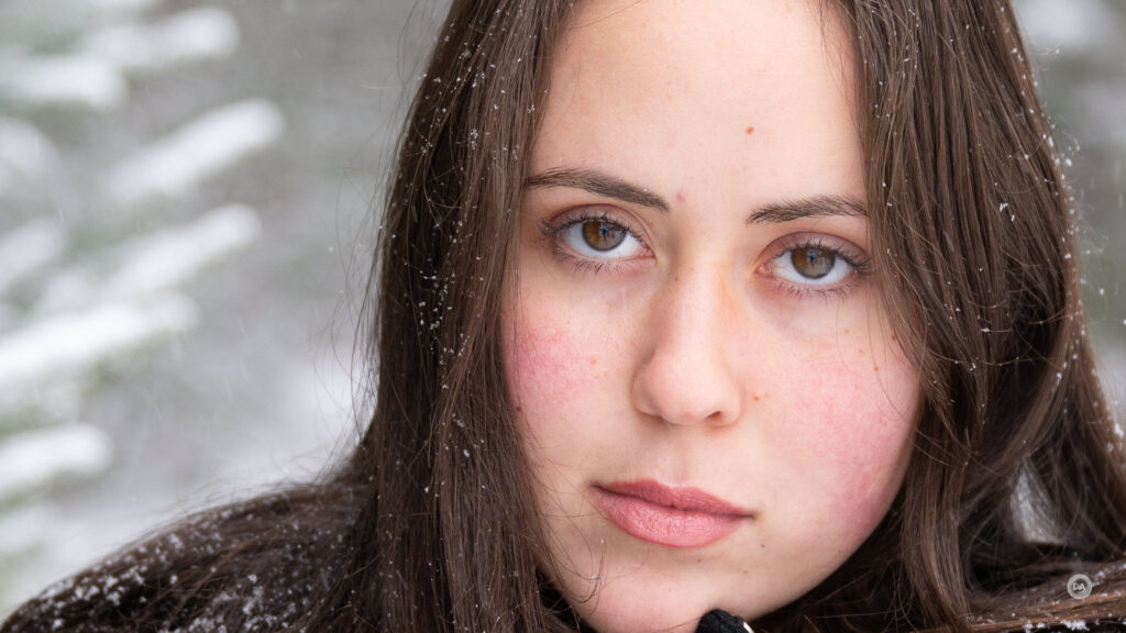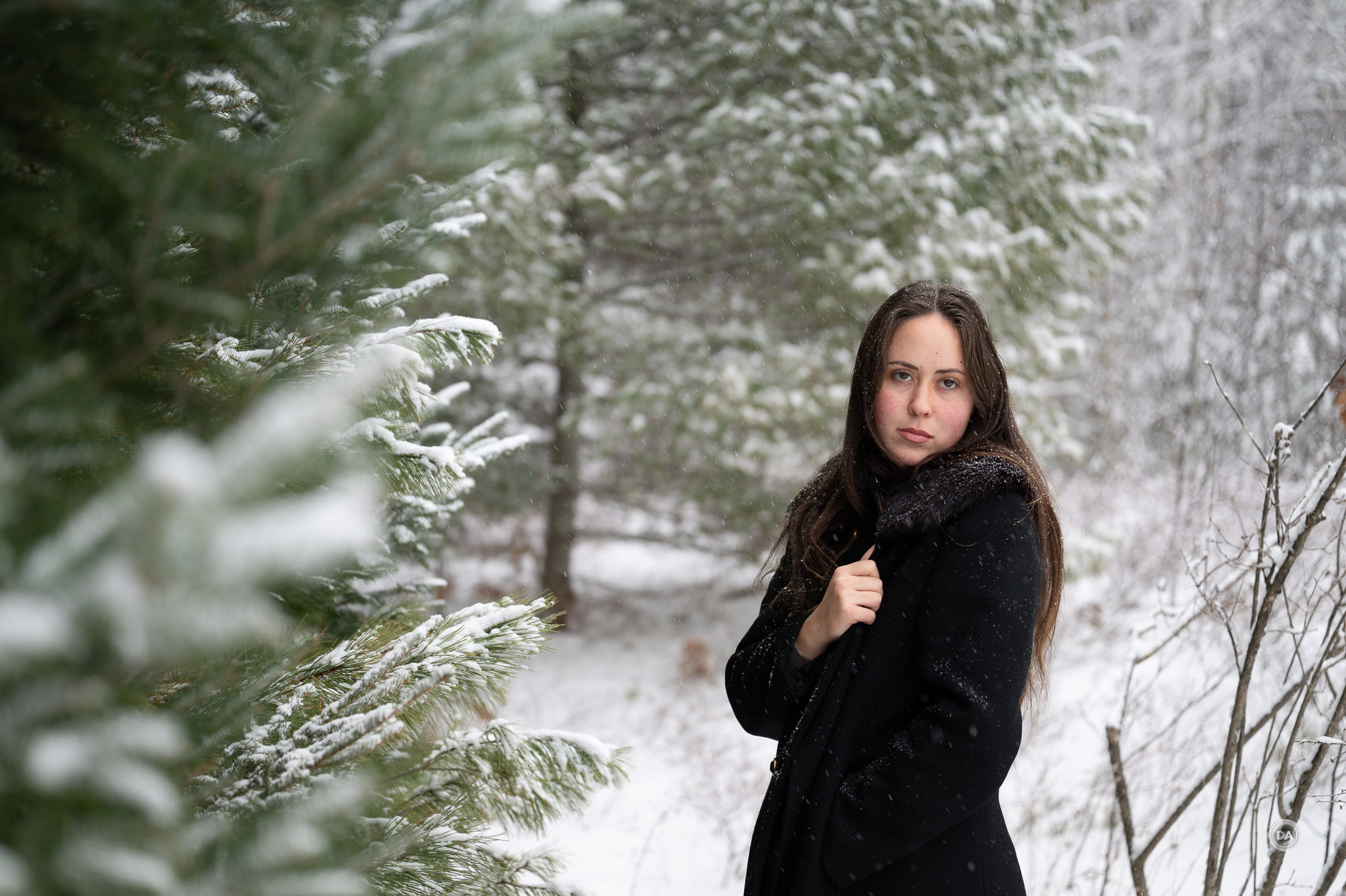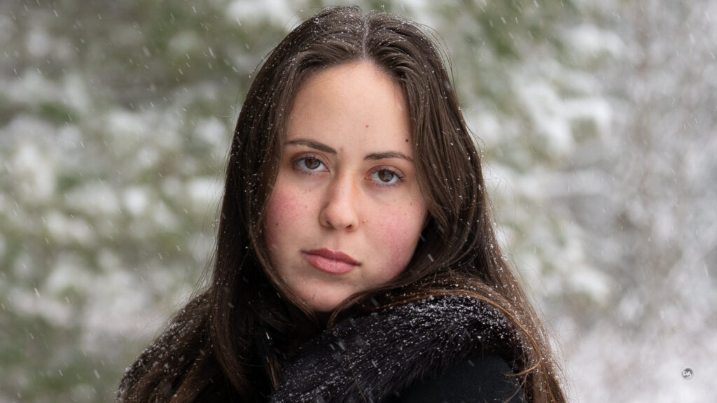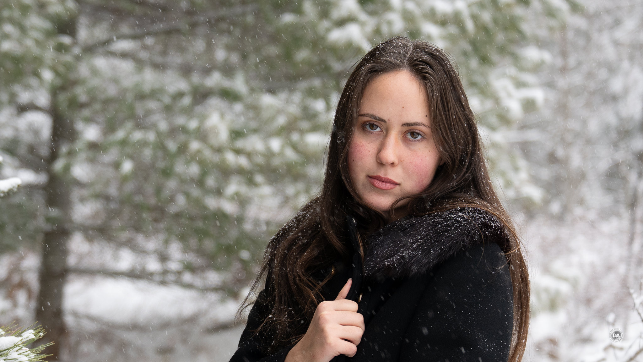 I got great portrait results even while shooting in a snowstorm (with the distracting flakes falling constantly).