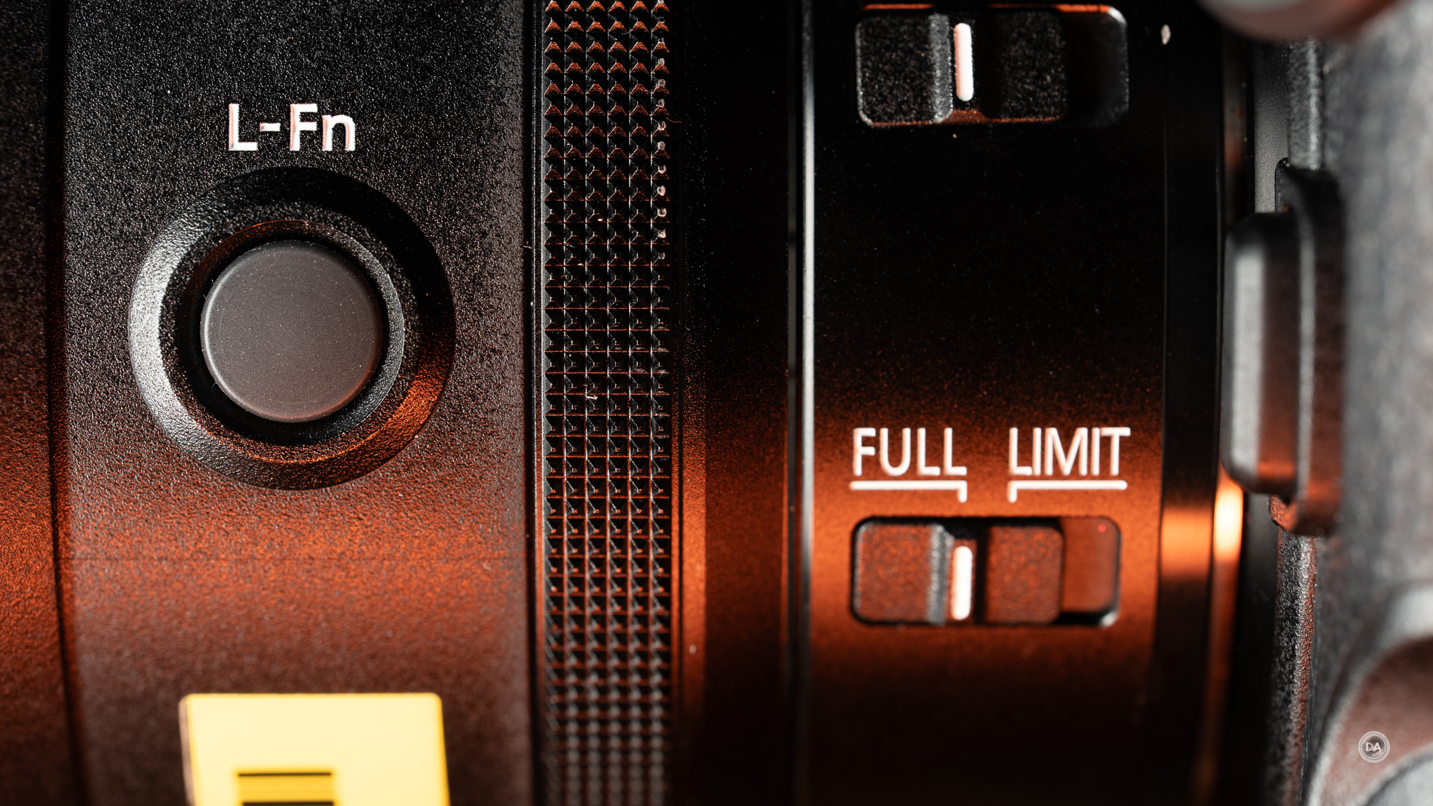 The function for these buttons can be chosen from within the camera body. Also present in this area are a AF | MF switch, and, interestingly, a Focus Limiter.