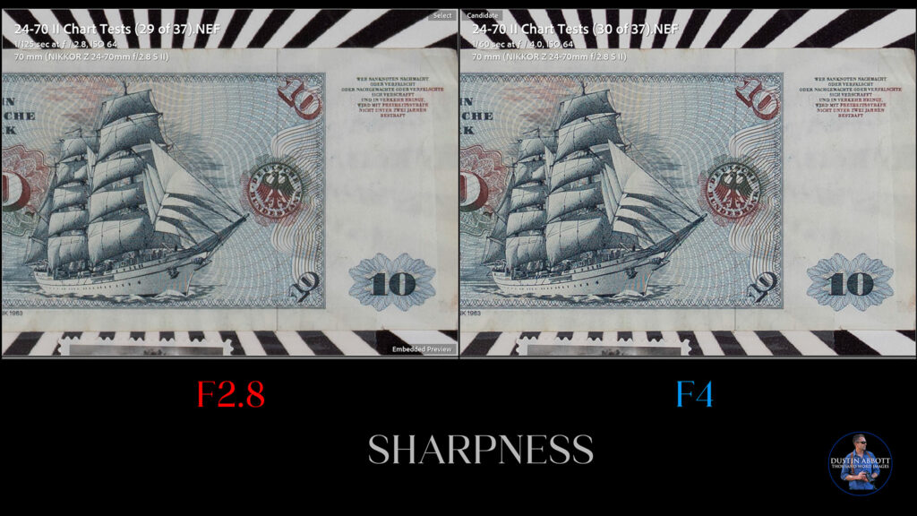 Sharpness is not a problem with the 24-70S II. This is definitely a “bag of primes” type zoom that can provide equivalent sharpness to good prime lenses across its zoom range.