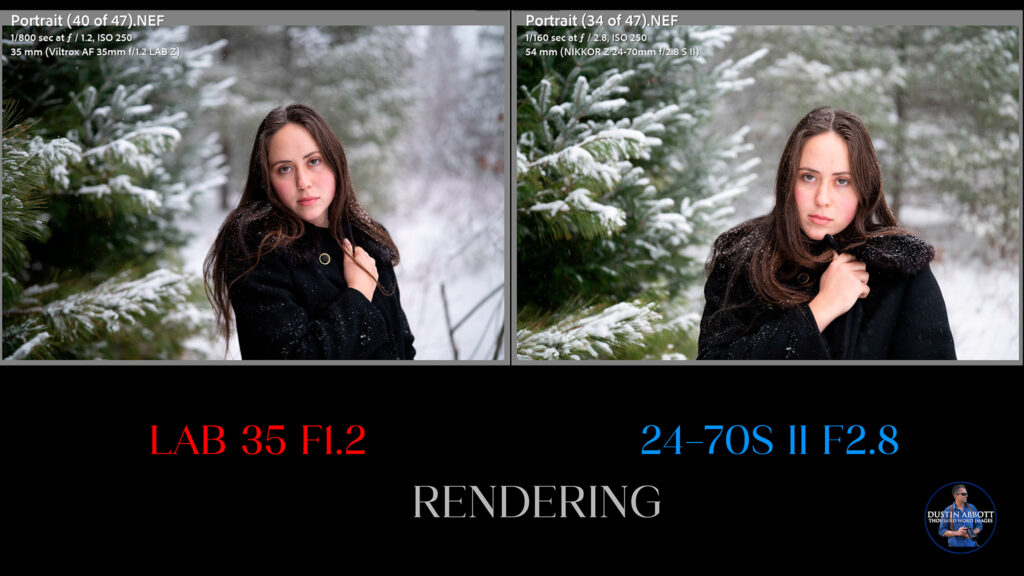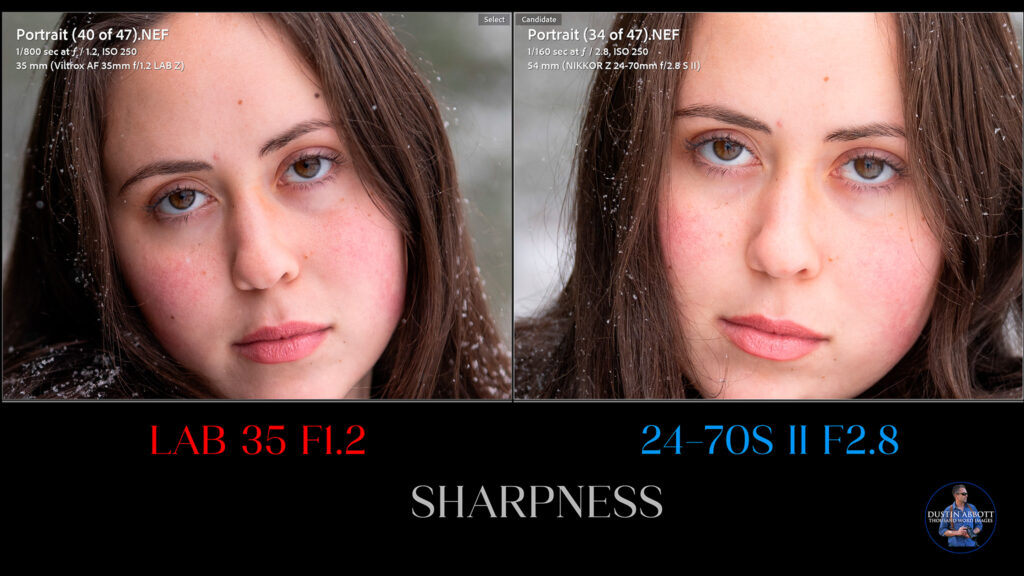 I looked back through my portrait results where I shot both the new Viltrox LAB 35mm F1.2 in Z-mount alongside the 24-70S II (what a treat that was!), but I found something comparable with the zoom closer to 50mm (gives a little “advantage” to the zoom due to more compression), but no big deal. First of all, the Viltrox is sharp enough to match the zoom even at F1.2, which is crazy.