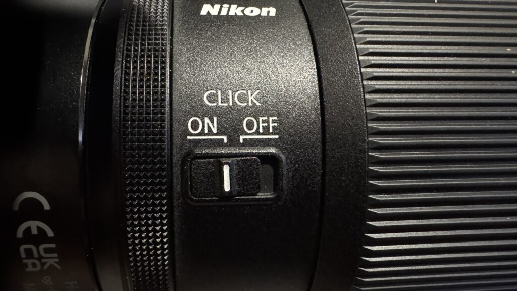 A very welcome feature addition comes in the form of Nikon’s first Click/Declick switch. This allows you to change the behavior of the customizable control ring to operate with or without clicks. I prefer clicks for aperture stops when shooting photos, but often prefer to a clickless ring when shooting video for incorporating smooth aperture racks into my shots.