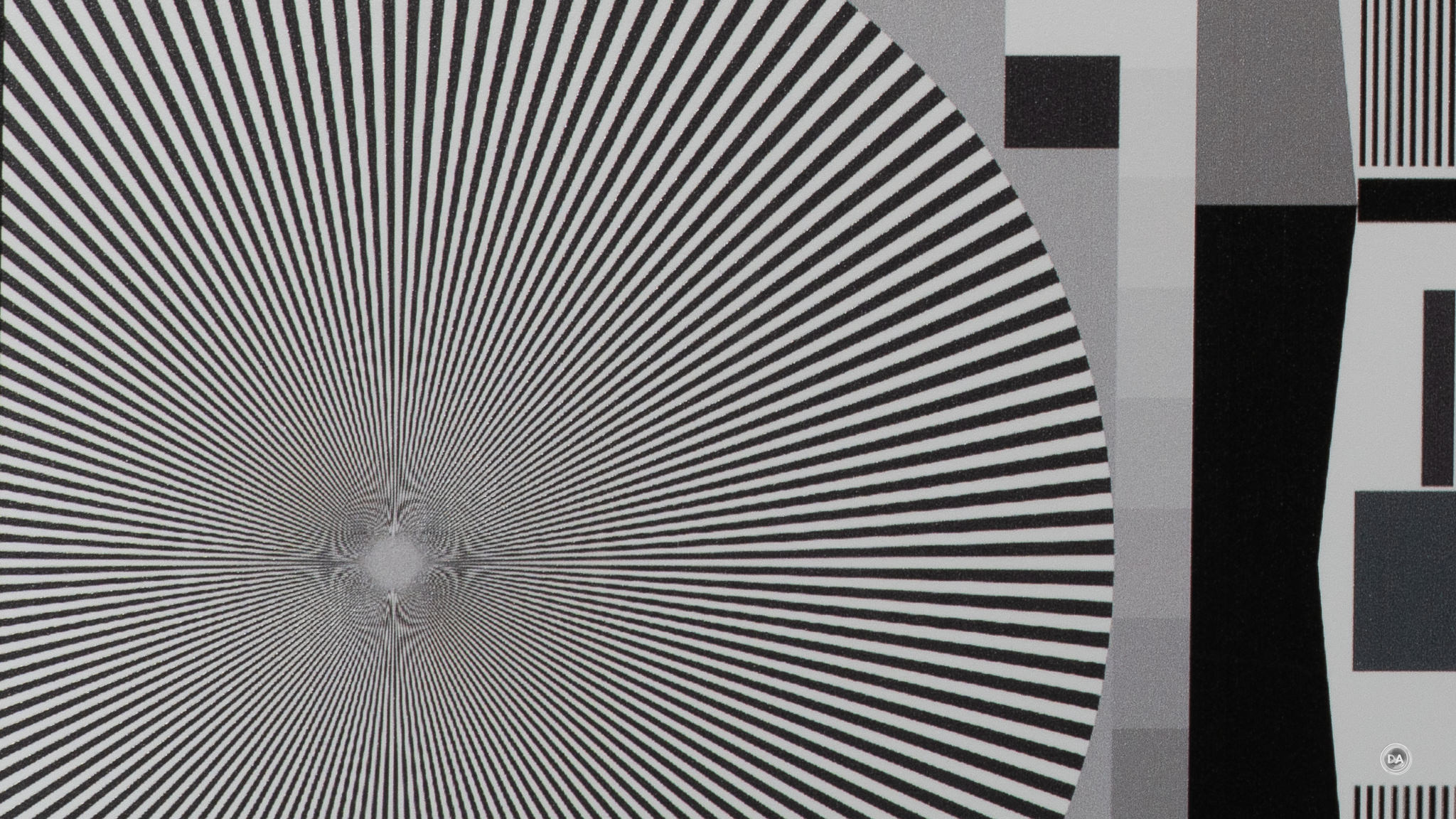 So let’s return to focus on resolution. These results are shot on a 61MP Sony a7RV and the crops are shown at roughly 200% magnification level. Here’s a look at the test chart that the crops are taken from.