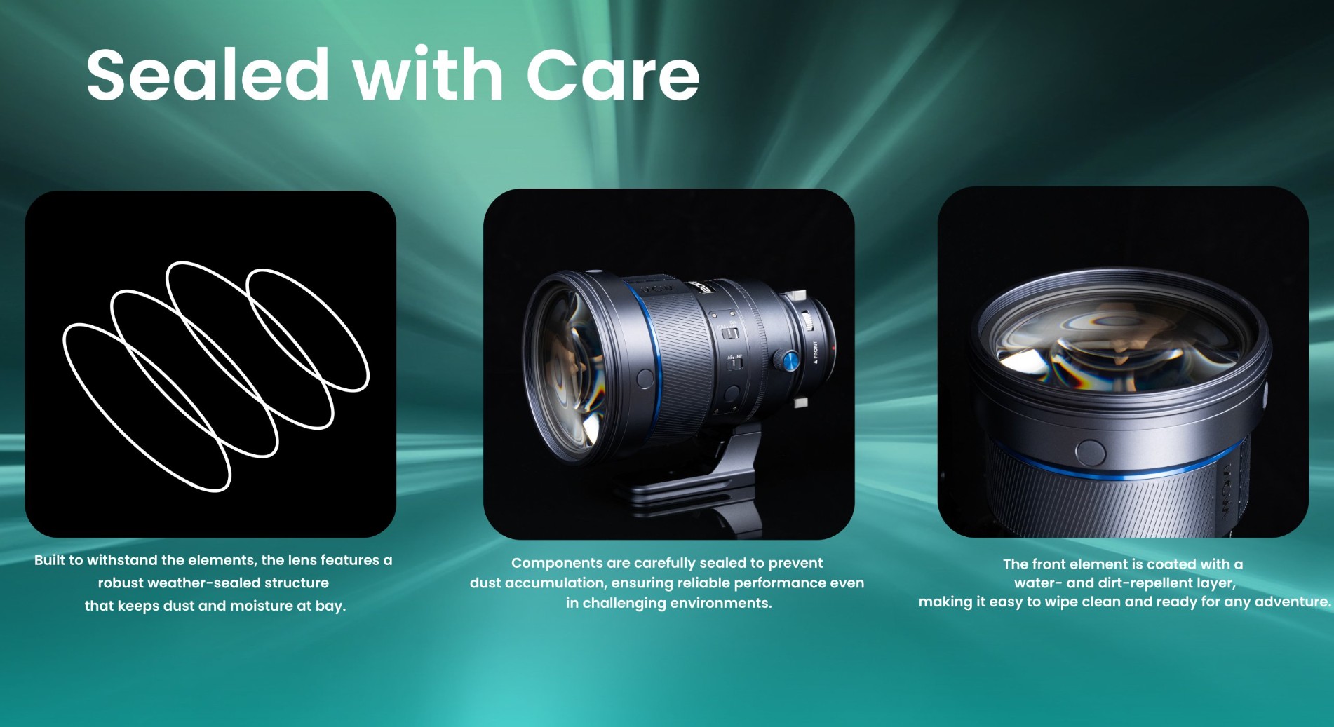 Laowa does tout some degree of weather sealing on this lens, and there is a gasket near the lens mount, a special coating up front, and some internal seals.