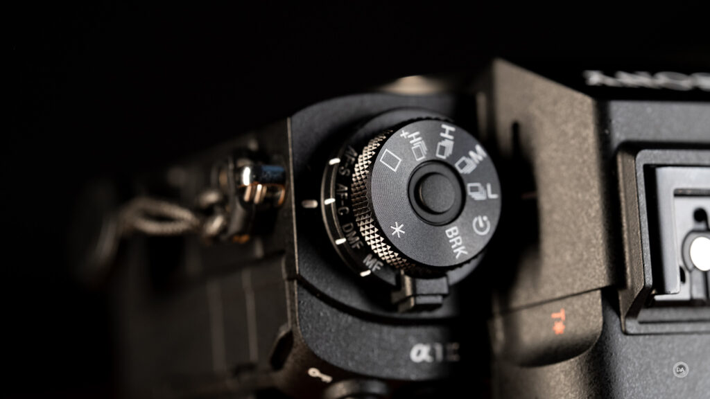 What we do have is the two-level control dial to the left of the viewfinder stack that is reserved for α1 and α9 cameras. This gives you control over the Drive Mode on the top and then control over Focus Mode on the bottom.