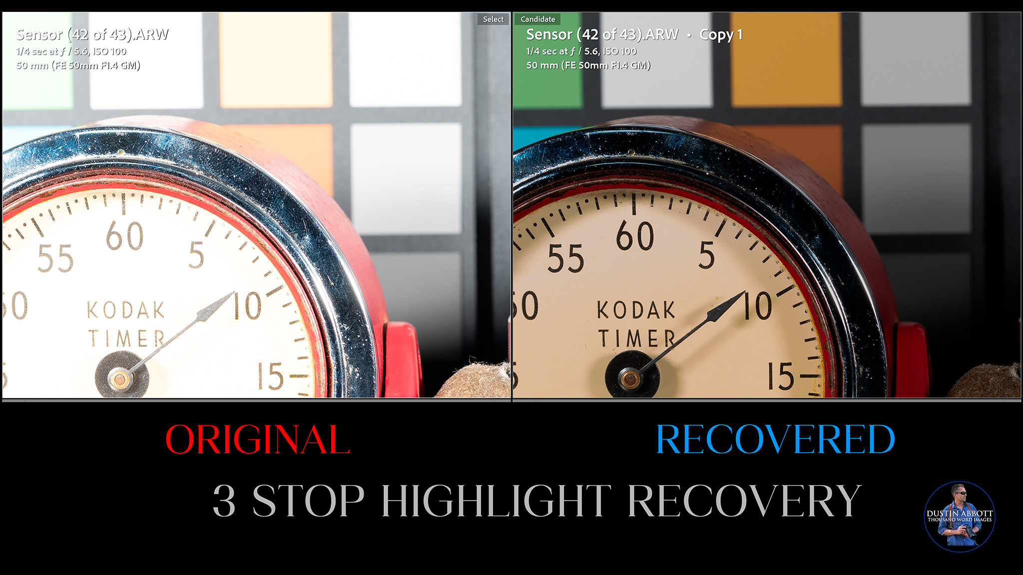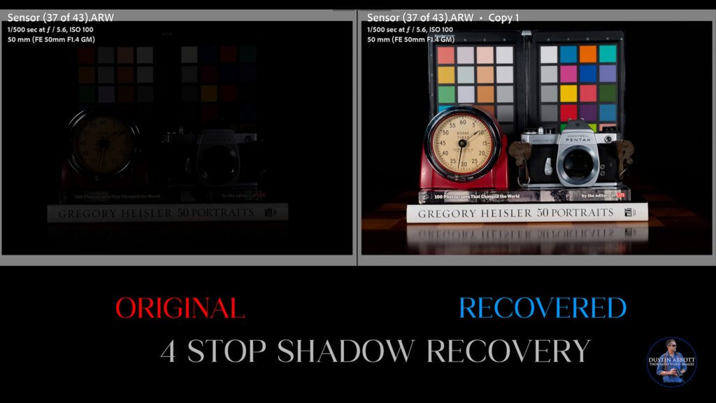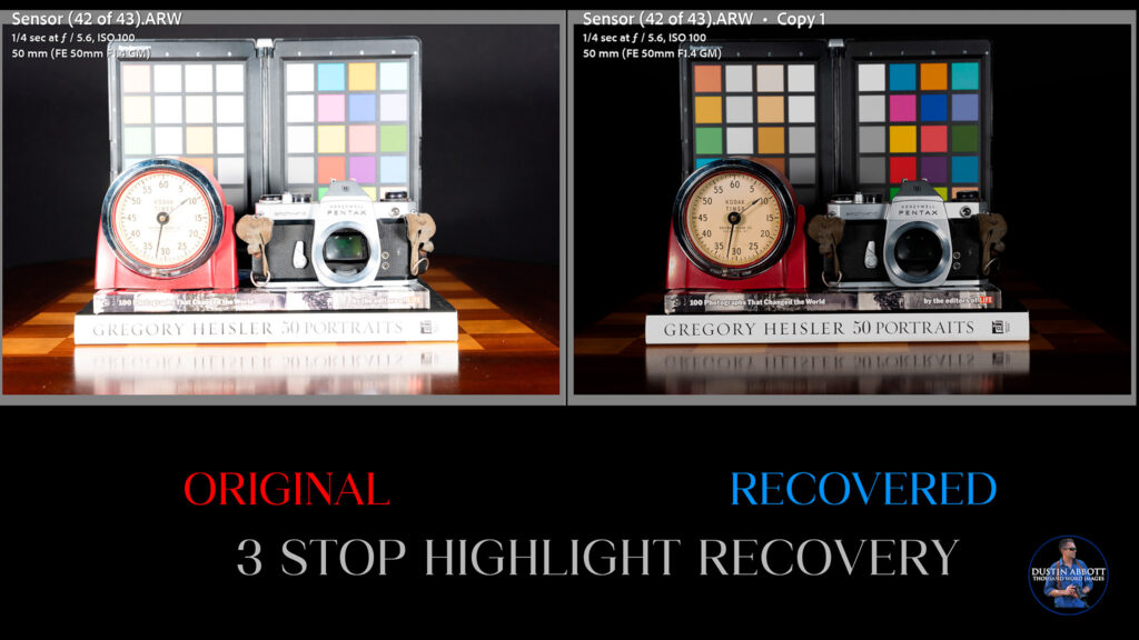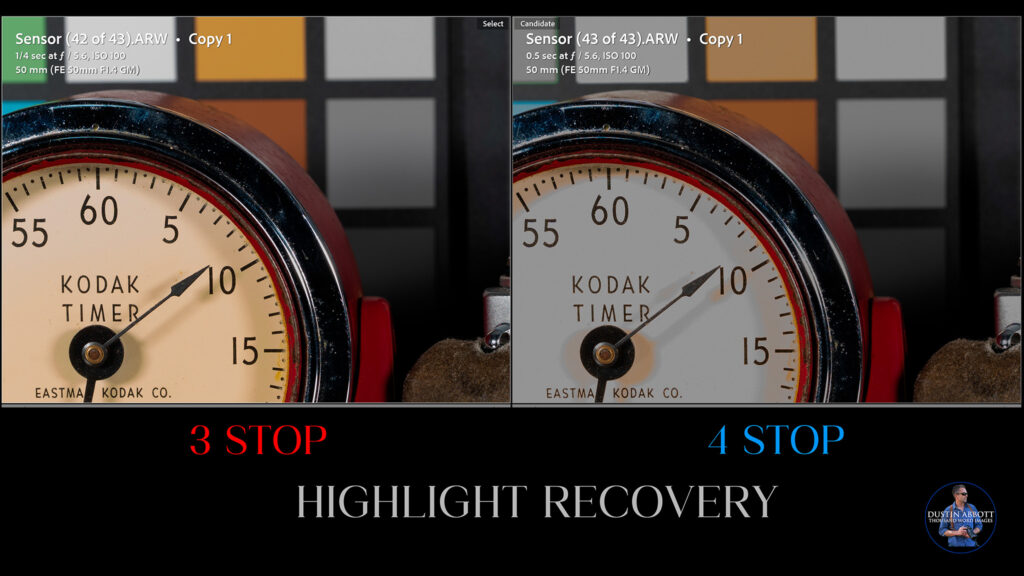 I found that the α1 II actually did a really excellent job in my own tests. I use a still life scene that I apply a base exposure to and then intentionally overexposure in steps up to 4 stops, then underexpose in steps up to 5 stops. We’ll examine the results both before and then at those extremes.