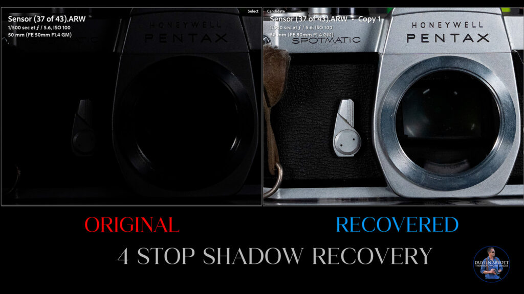 If we compare our original and then recovered result at a pixel level, it will show you how completely and how cleanly those shadows have been recovered.