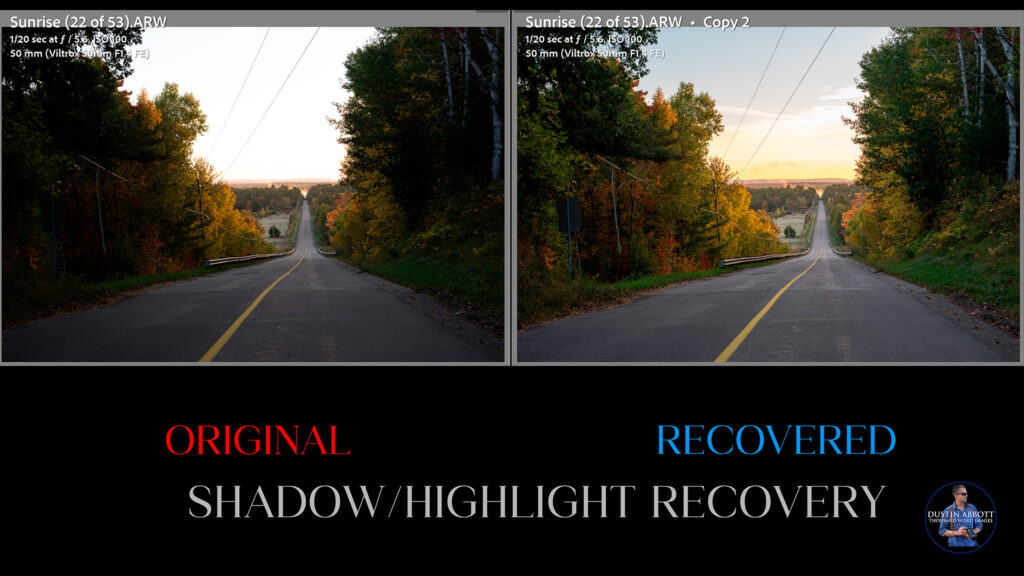 Dynamic range has become one those topics debated ad nauseum on photography forums and harped on by certain reviewers to the place where some perspective has been lost on the topic. It has become one of the key “stats” where brand fanboys either push their brand or bash another, causing many people to become disgusted with the term in general.  That being said, there is no question that there are a number of situations where improved dynamic range gives the photographer (and particularly the post-processor) more latitude to fulfill their vision. This could be in the ability to recover a blown-out sky or shadowed area as a landscape photographer or the ability to balance a foreground subject with a background or sky for portrait photographers.  I’ve also been able to save images where I captured something special but a flash didn’t fire.  In the image below, I was able to restore color in the sky along with details (and color) in the shadows, making for a more vibrant and engaging image. The only difference was using the highlight and shadow recovery sliders in Lightroom.