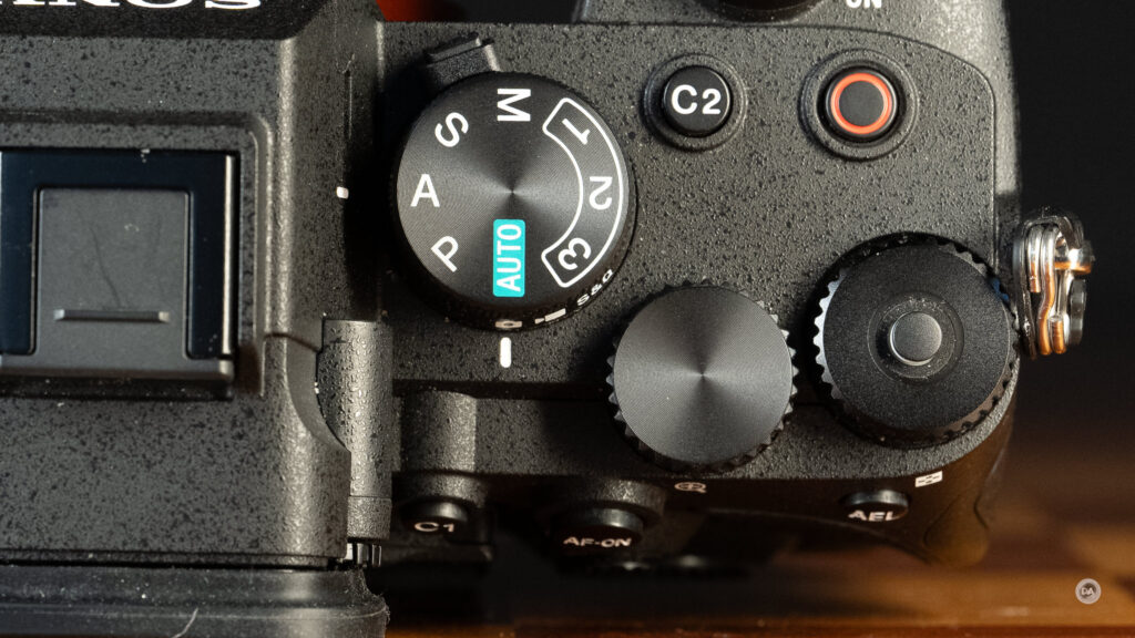 We’ve also got the common Sony two-layer dial that has mode on the top (Auto, PASM, and 3 custom modes) and then a Stills/Video/S&Q (slow and quick) option below. This is great, as it allows you to have a completely different configuration for stills and video, up to and including button and menu customization for each setting.
