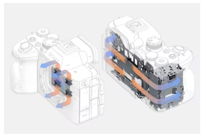 Another key improvement is to the physical design, where a new design allows for superior heat dissipation. Sony says, “A unique Σ (sigma) shaped graphite component built into the image stabilization unit allows the image sensor, a major source of heat inside the camera body, to move freely during image stabilization while conducting heat away for efficient heat dissipation.”