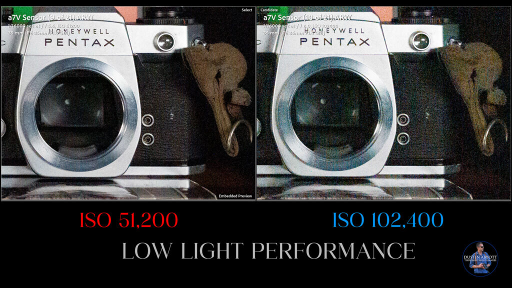 In a pinch, you might be able to get away with ISO 51,200 in ideal conditions, but by 102,400 the image is complete garbage, with heavy noise and obvious color banding.