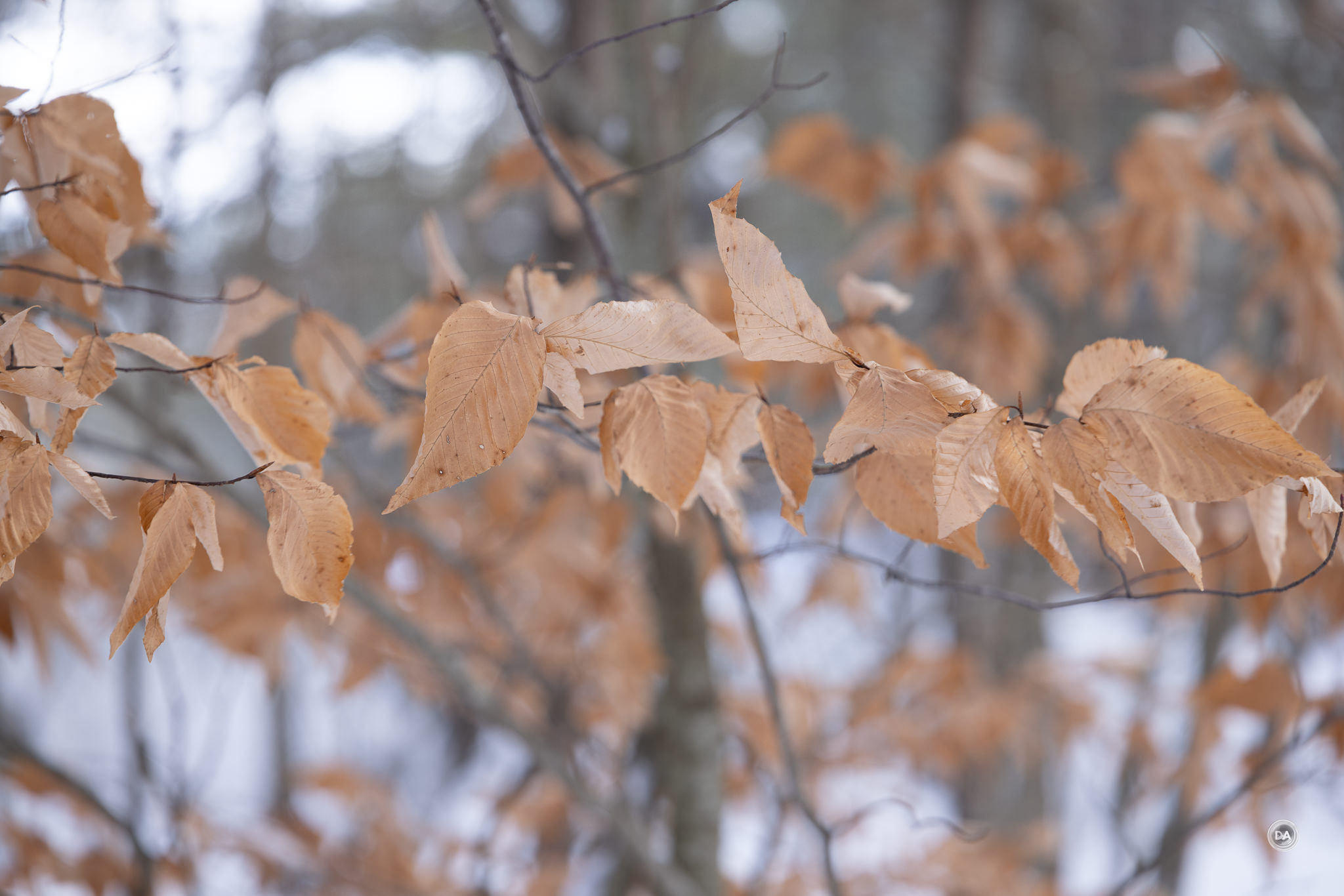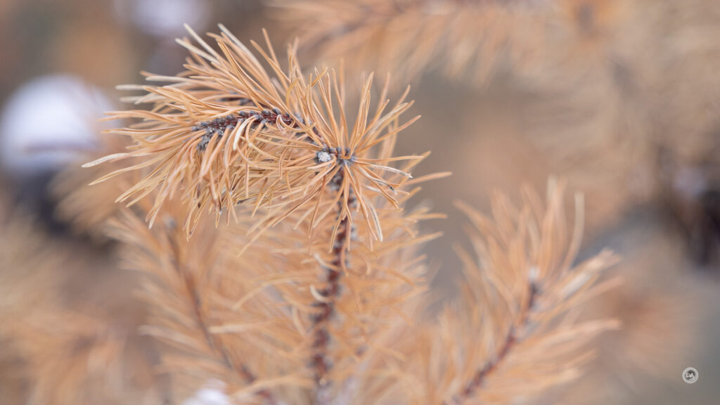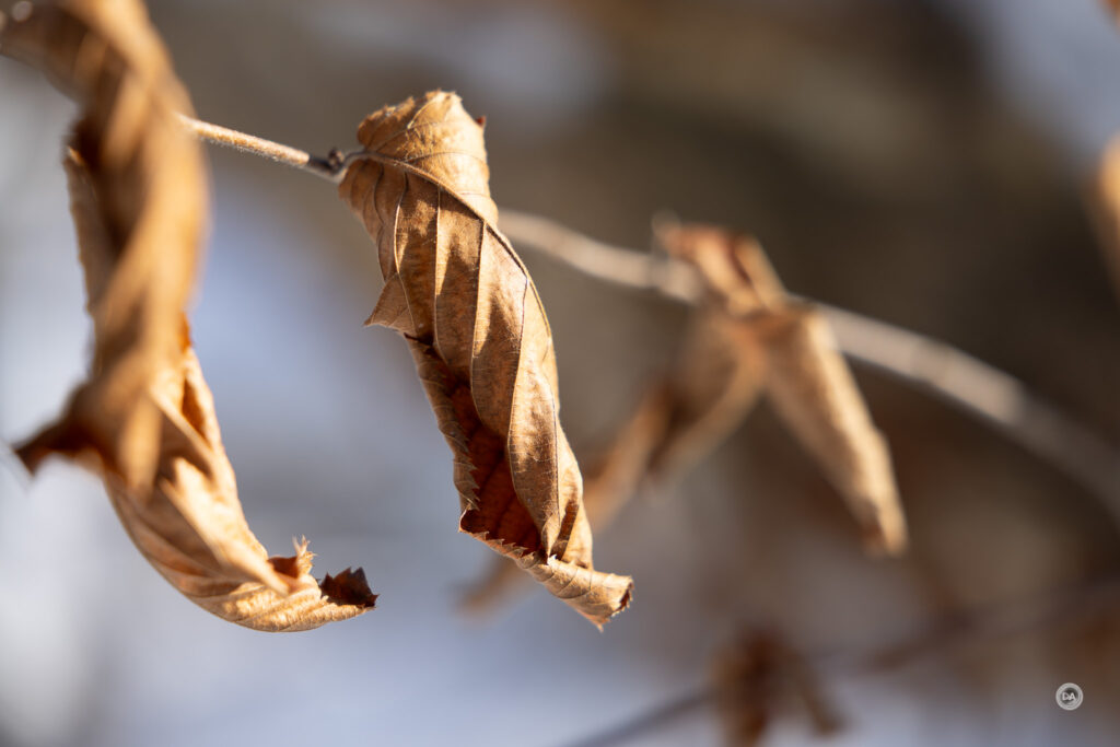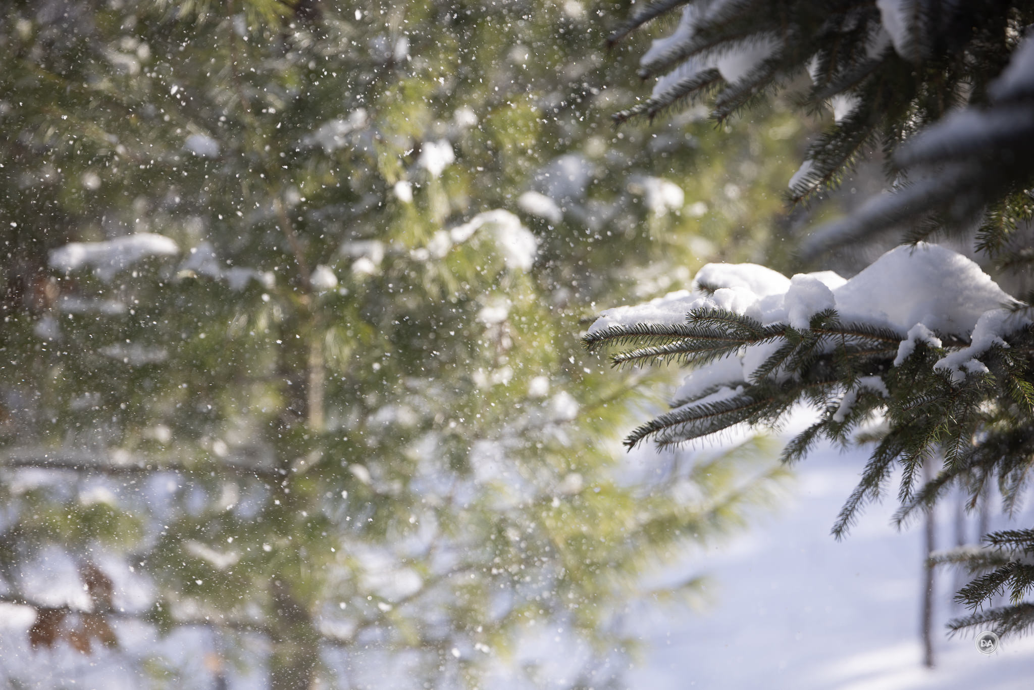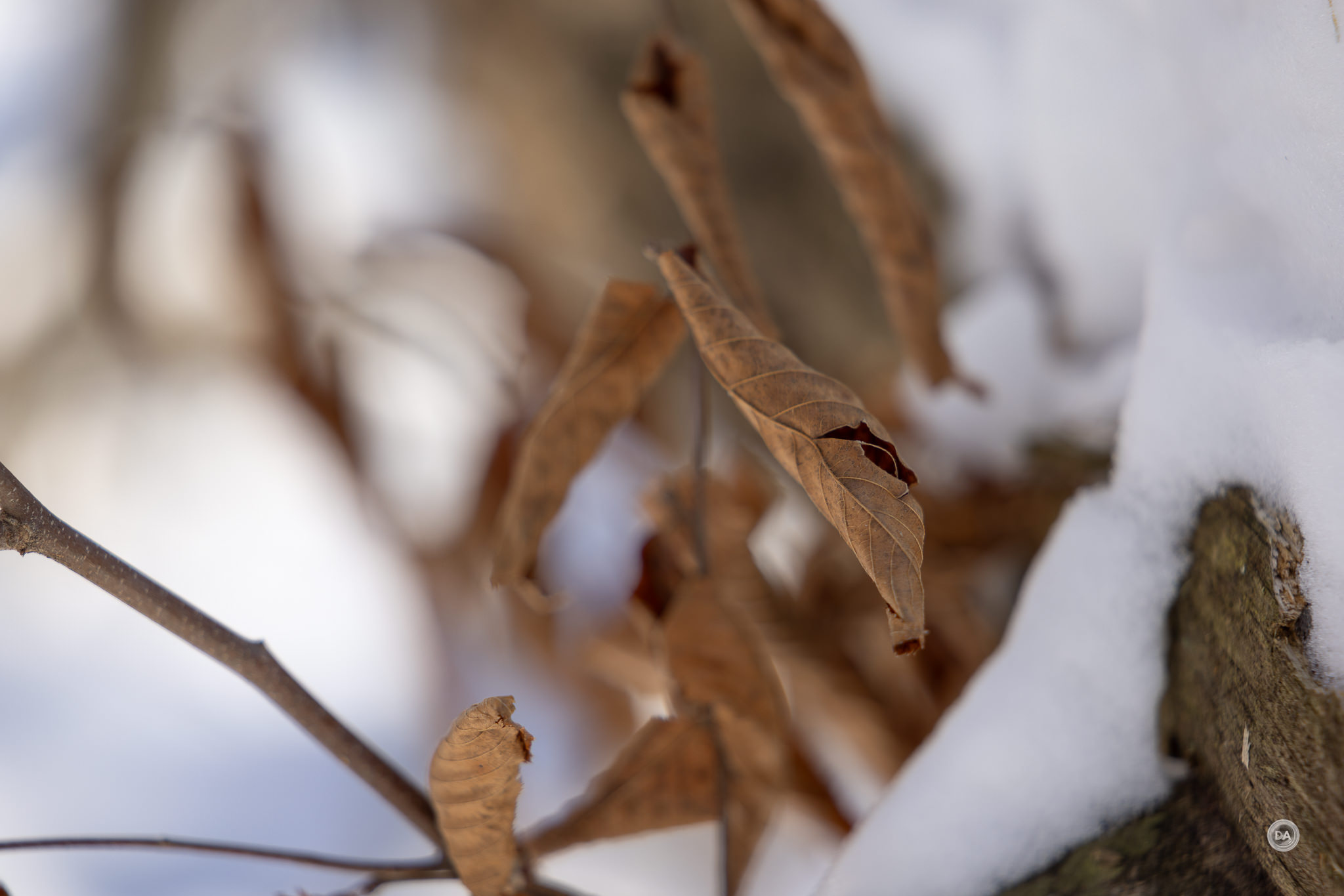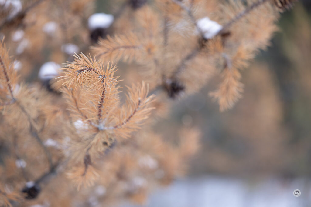 I could also snap up and grab a shot quickly when snow began to blow off branches and created a unique texture.