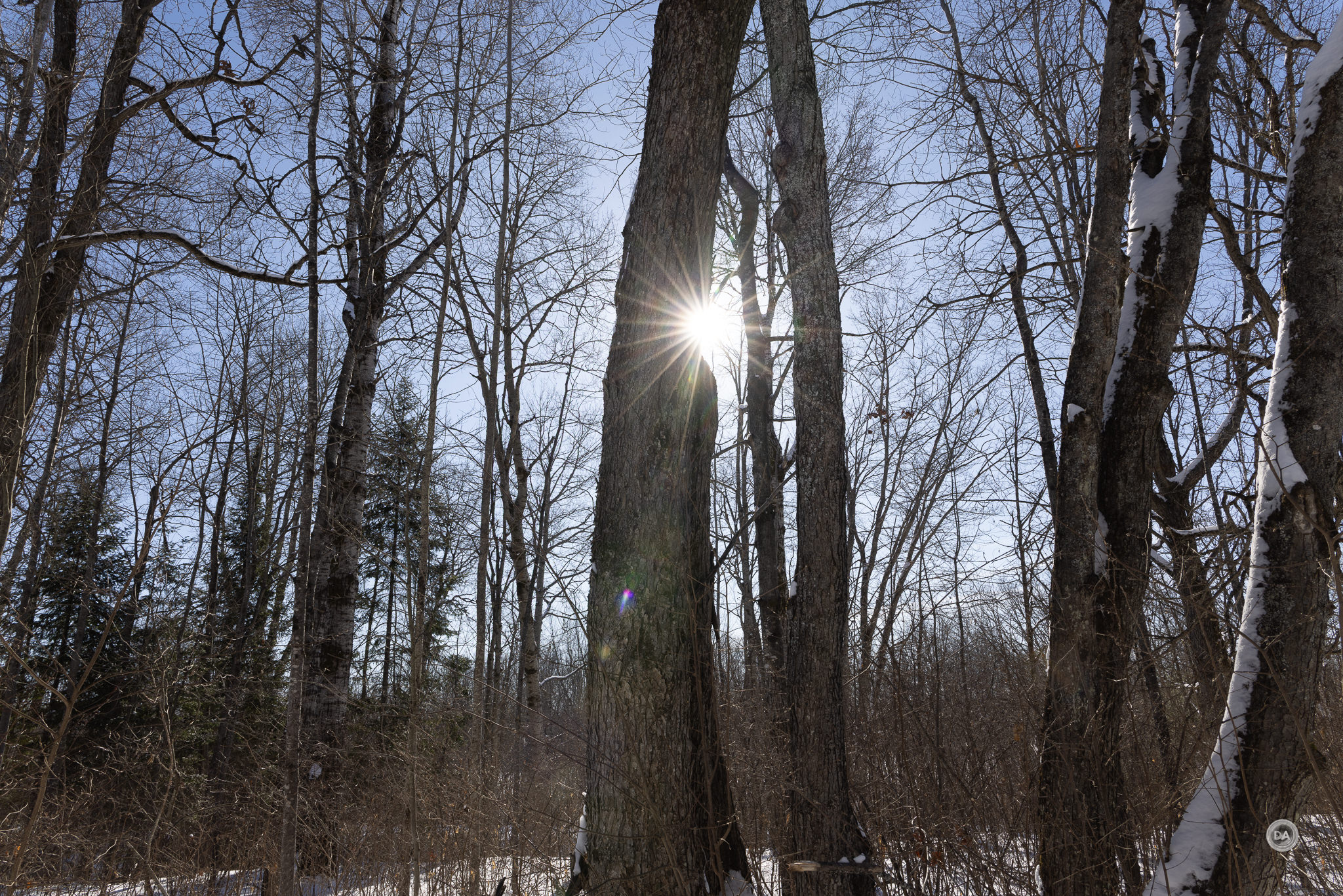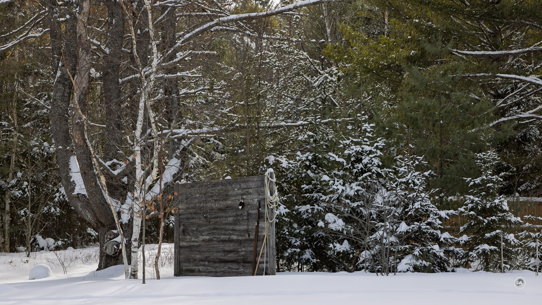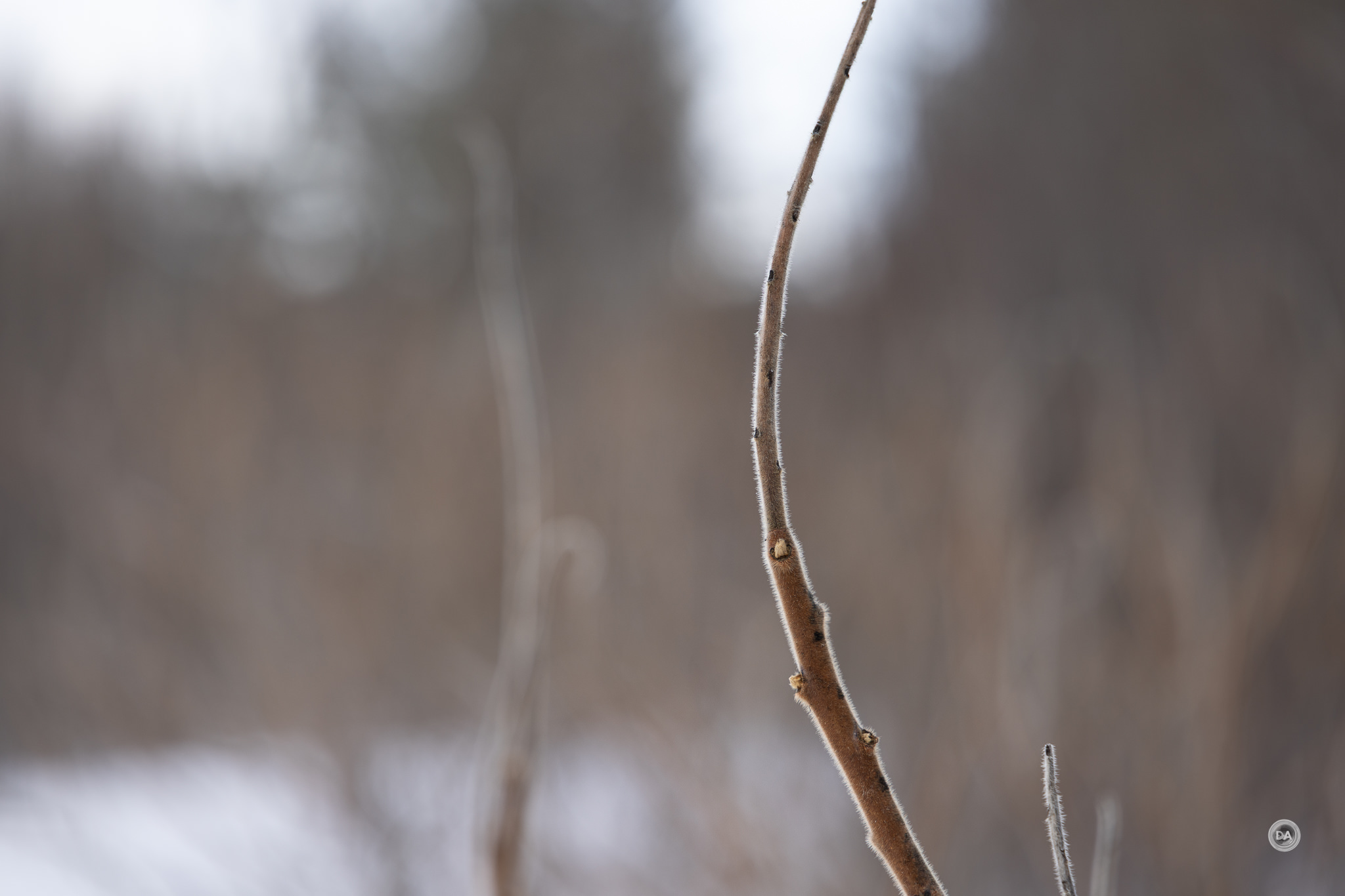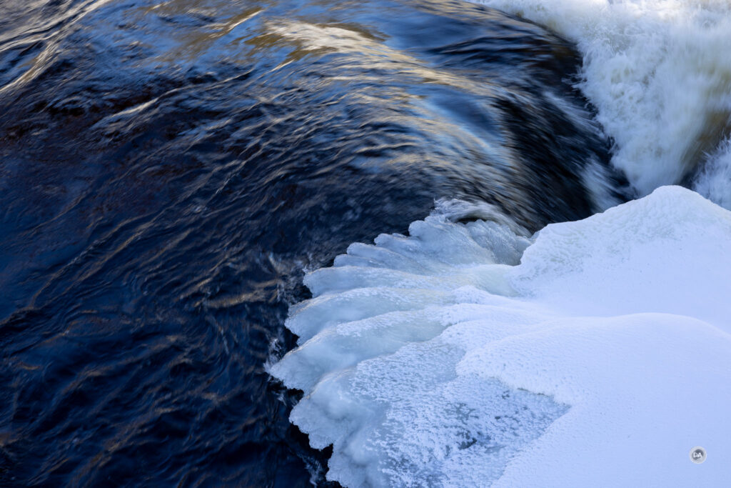 I could also snap up and grab a shot quickly when snow began to blow off branches and created a unique texture.