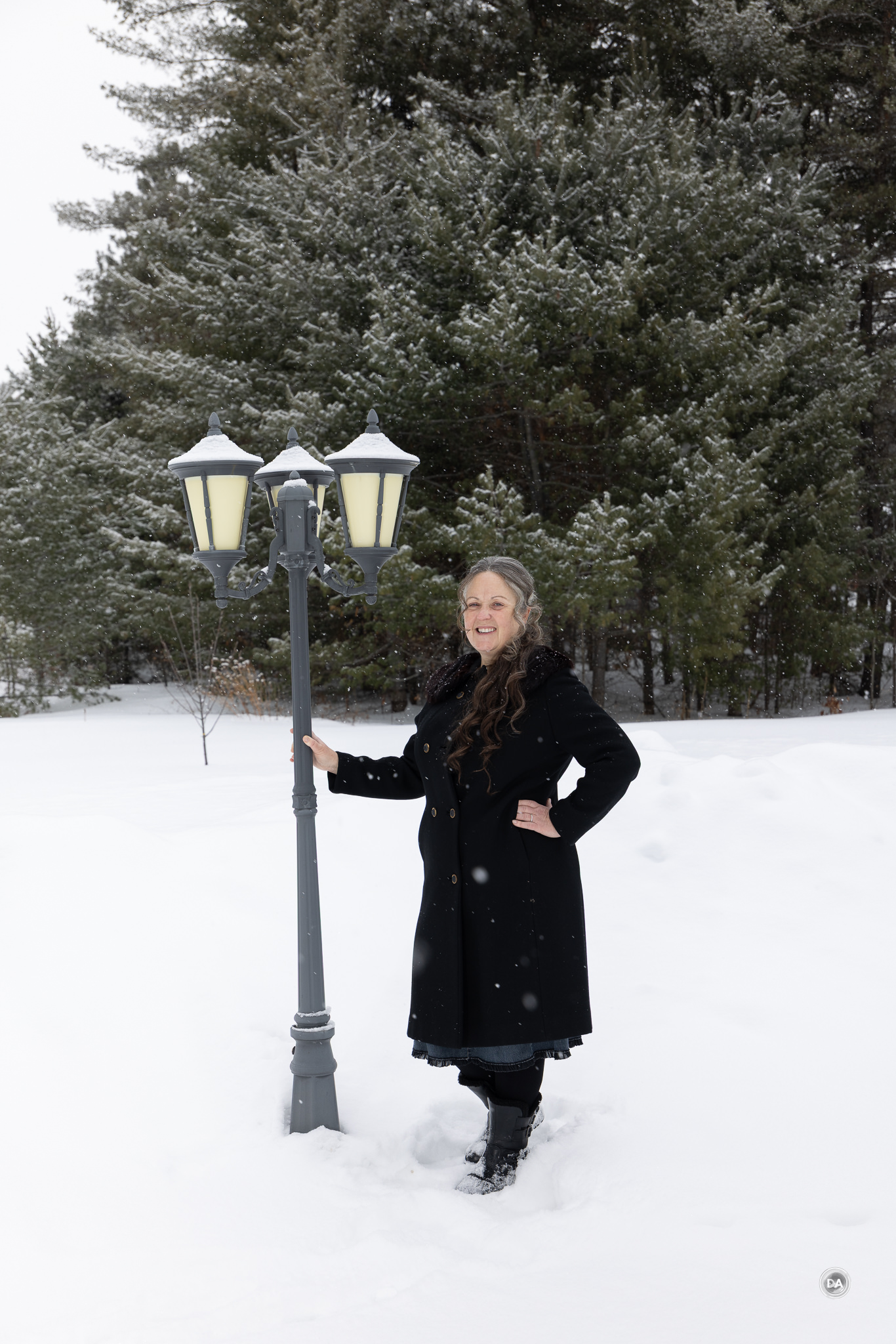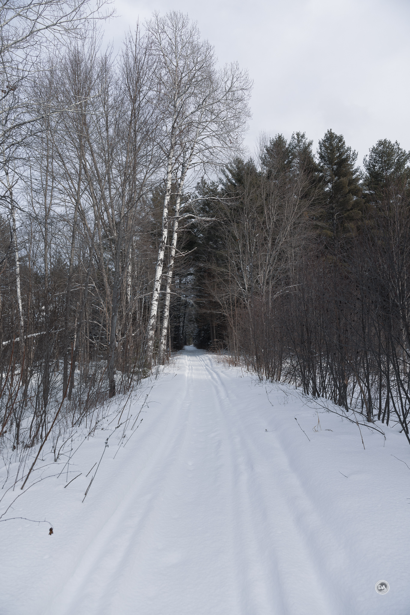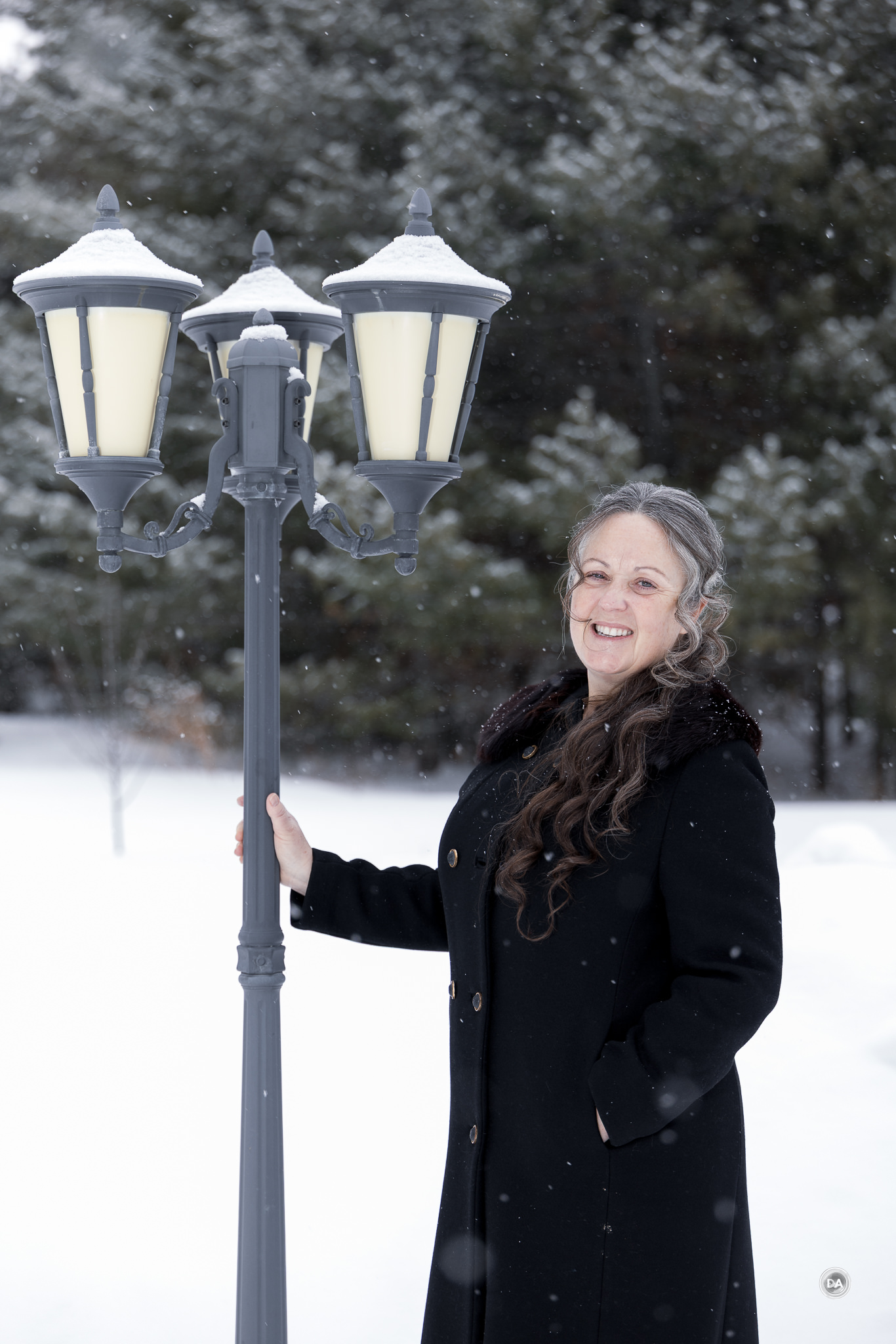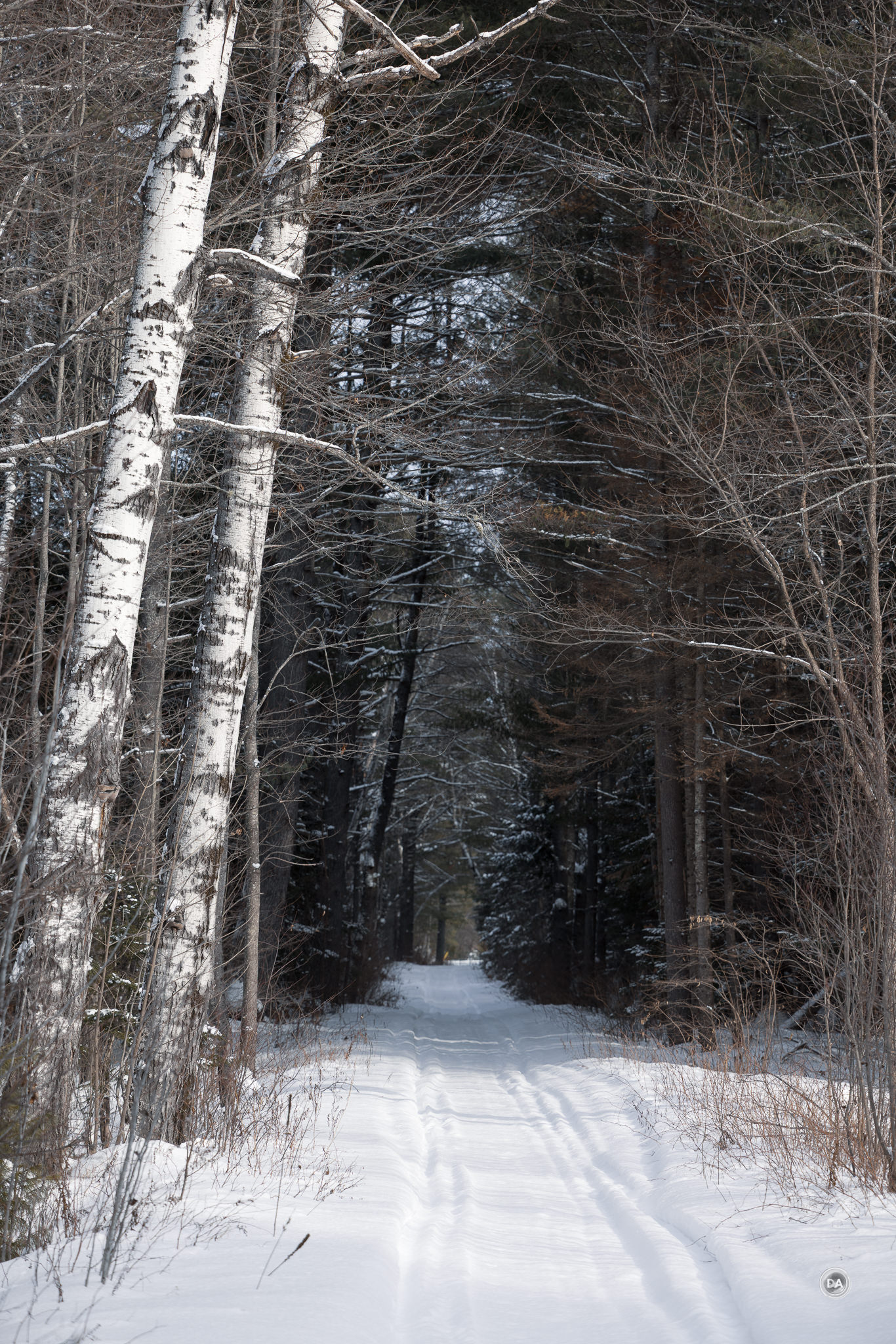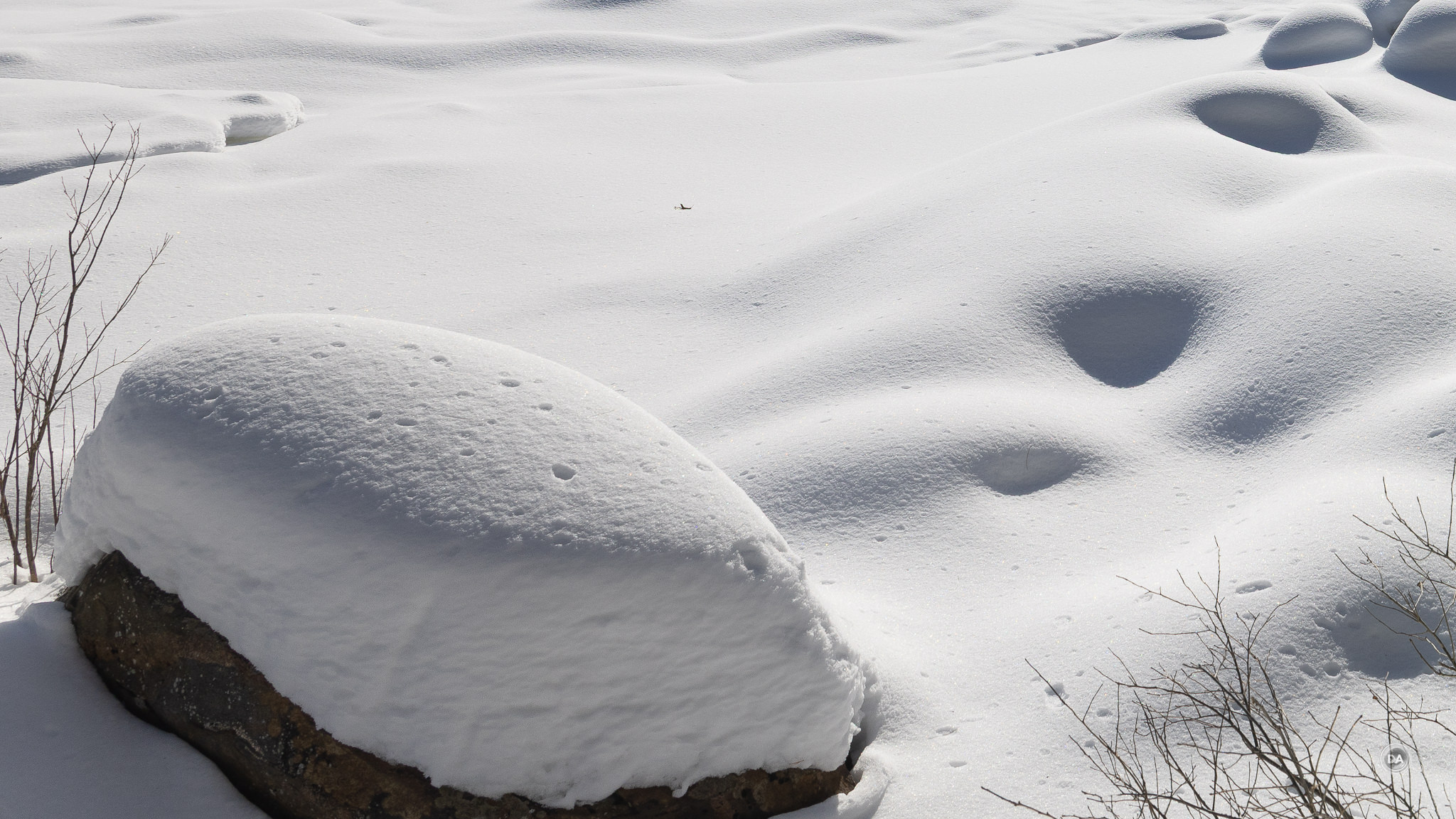 I could also snap up and grab a shot quickly when snow began to blow off branches and created a unique texture.