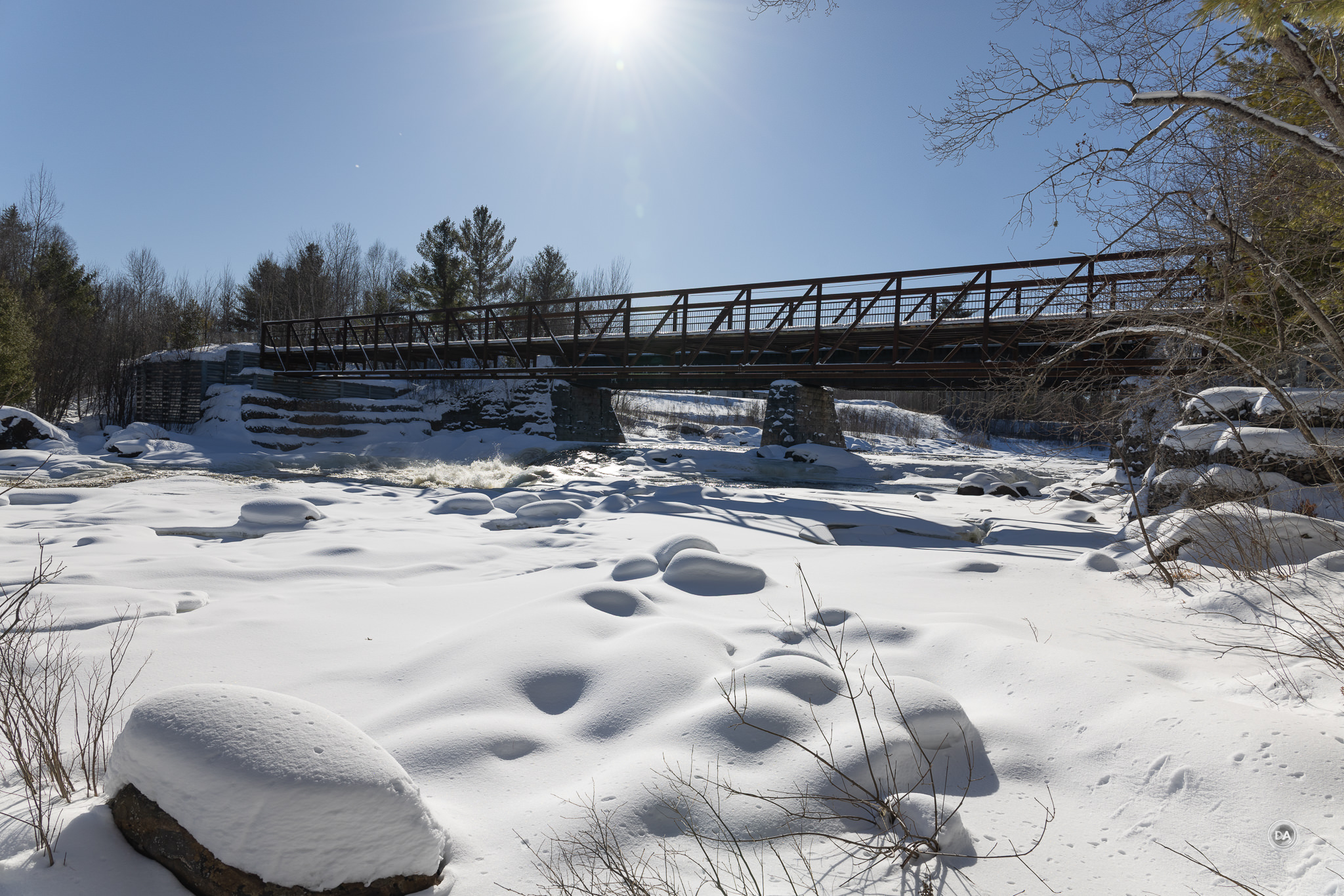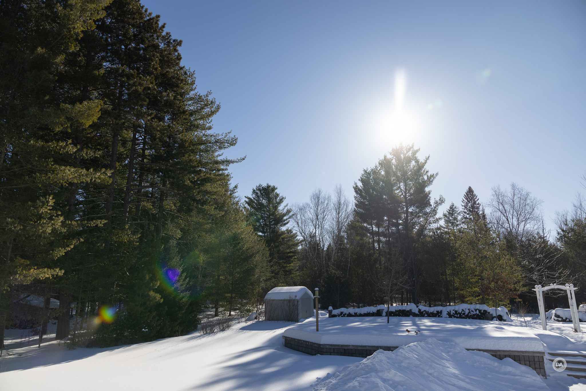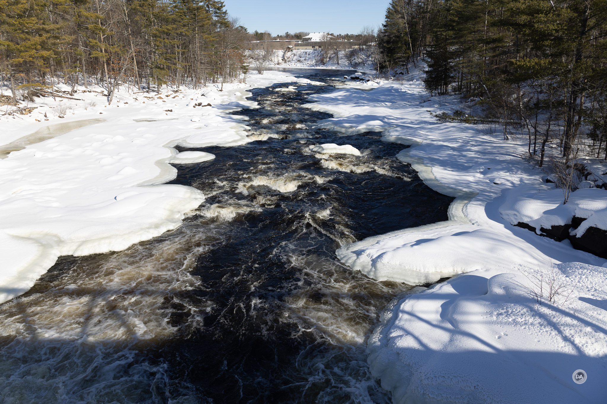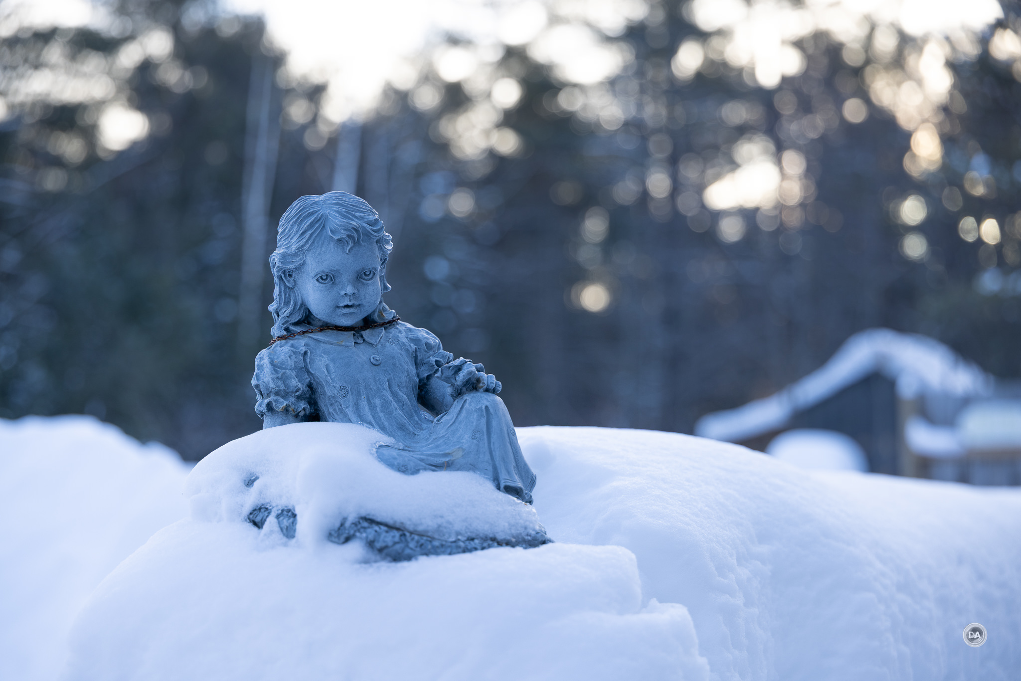 I could also snap up and grab a shot quickly when snow began to blow off branches and created a unique texture.