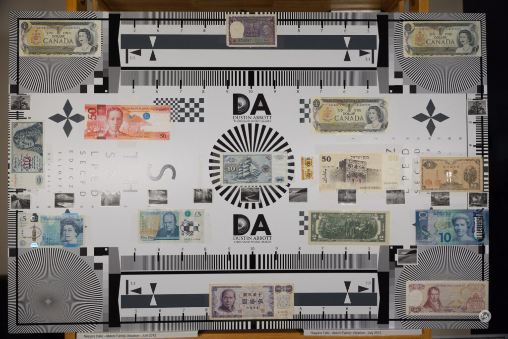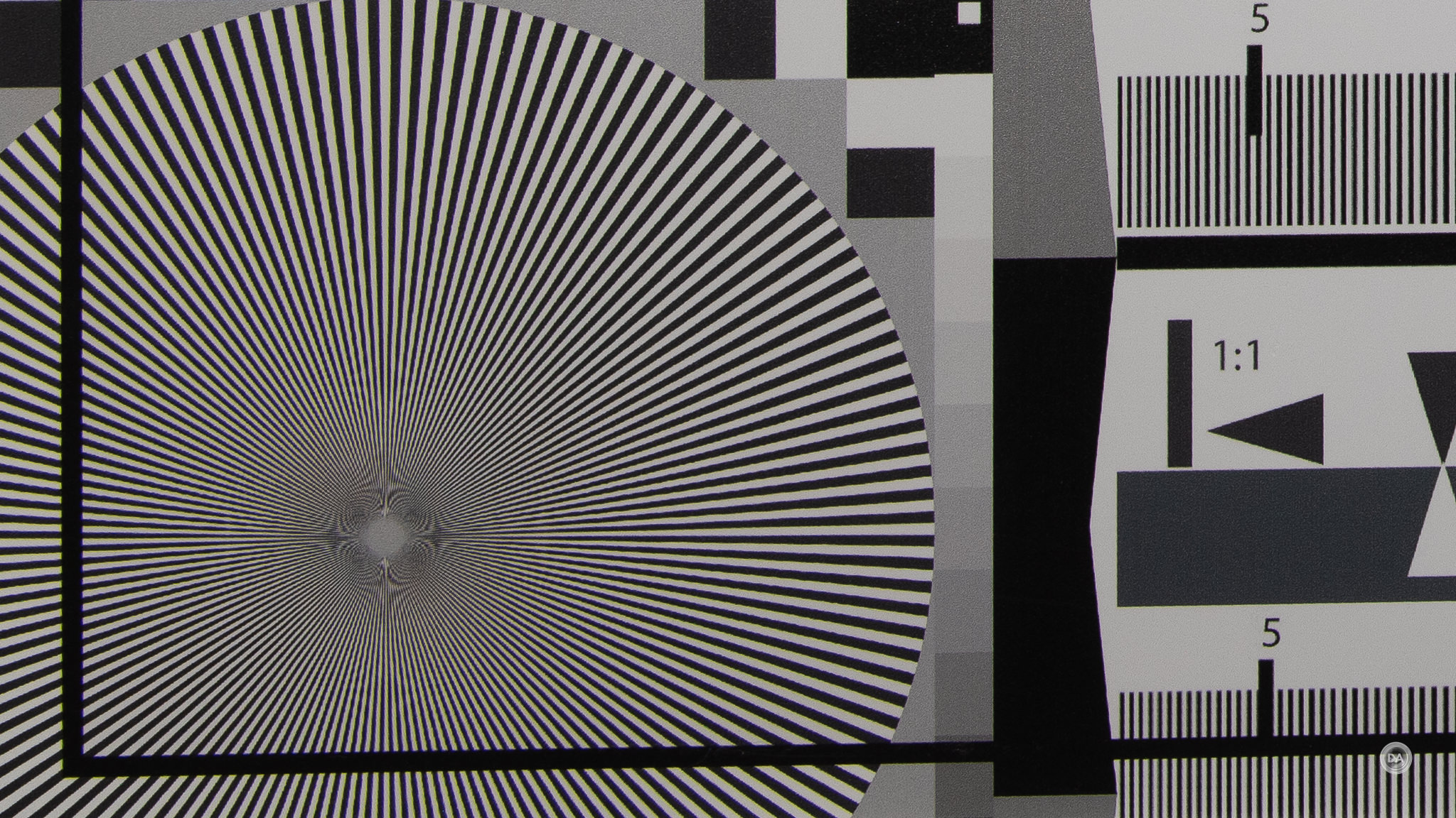 When we move on to sharpness and contrast, however, we find the greatest strengths for this lens. Here’s a look at my test chart that the crops will come from.