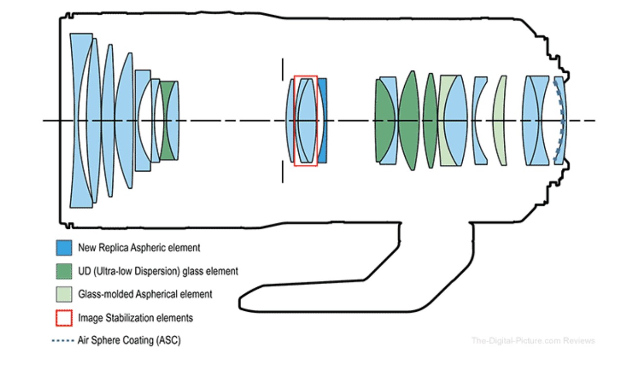 The RF 24-105mm F2.8L IS USM Z sports a complex optical design of 23 elements in 18 groups. This includes a variety of exotic elements, including some unique aspherical lenses, 4 UD elements, and Canon’s proprietary ASC (Air Sphere Coating).