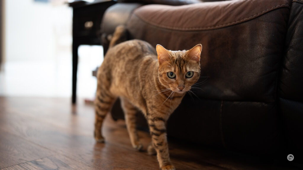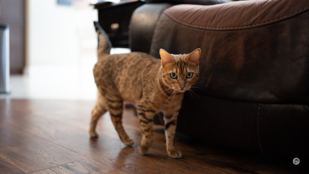You can see in this shot that Nala had quickly moved basically out of frame by the time I got the camera up and snapped the photo, but it is still accurately focused even though depth of field is very shallow.