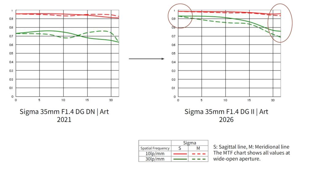 Sigma chose to benchmark their first gen lens in their literature, and while that lens was very sharp, we can see that the new lens is sharper, well, everywhere.