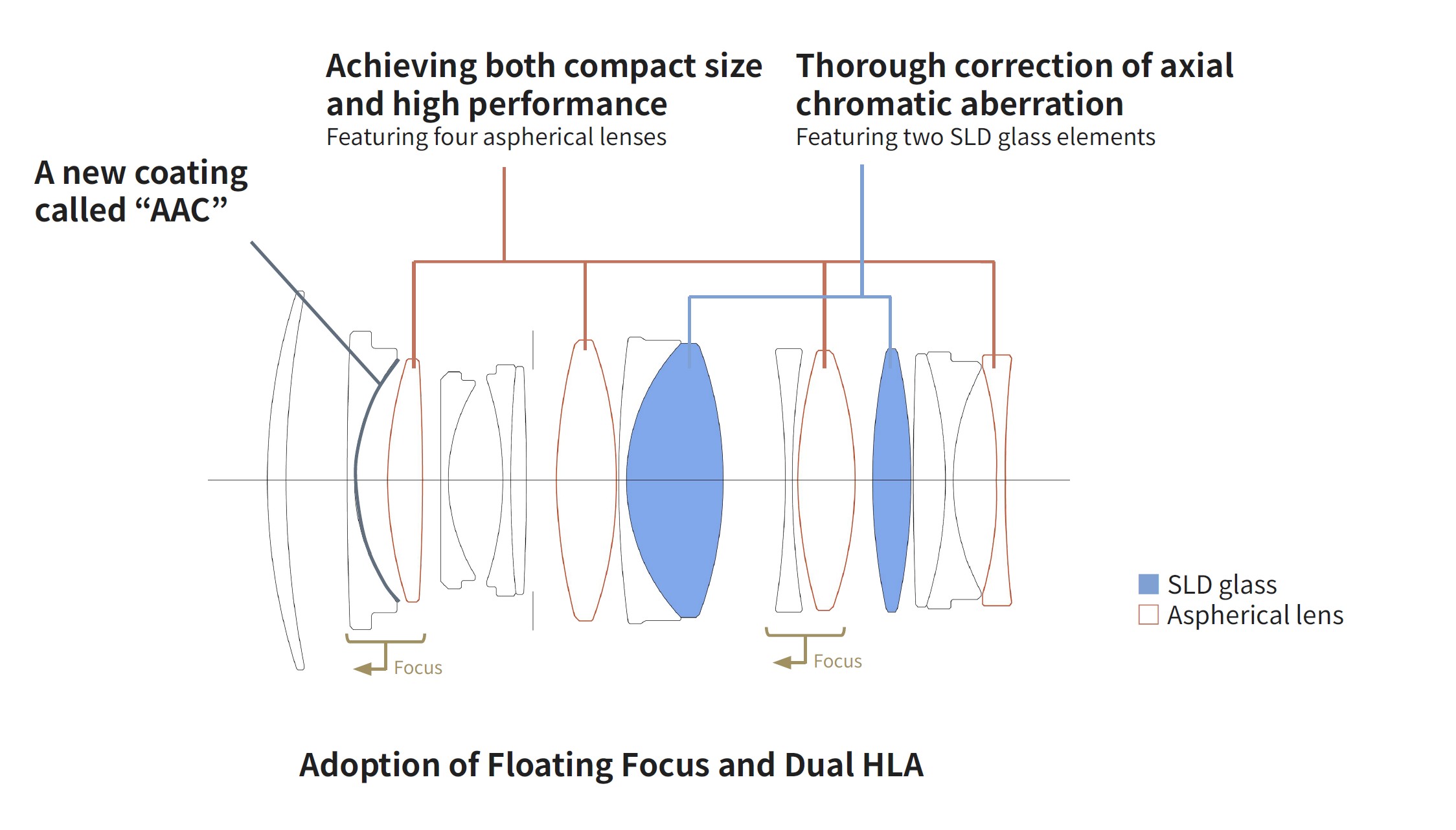 Like the 35mm F1.2 II, Sigma has equipped the 35mm F1.4 II with dual HLA focus motors. Sigma debuted the HLA (High speed Linear Actuator) focus motor a few years ago, but only now are they developing the ability to use these motors in tandem. It was this breakthrough that Sigma actually credits for their being able to reduce the size of these lenses from the first generation. This is one area that has really set Sony GM lenses apart from the competition, but between Sigma and Viltrox, it is clear that the competition is catching up. The HLA motor has much more torque/thrust than lenses equipped with a stepping motor (like the first gen 35mm F1.4), which is very important when you are talking about a lens with larger, heavier optical glass like this one. The increased thrust of the focus motors makes focus extremely snappy. This diagram shows that there are two different focusing groups, and, while heavier, the higher thrust potential of the HLA motors actually improves focus speed.