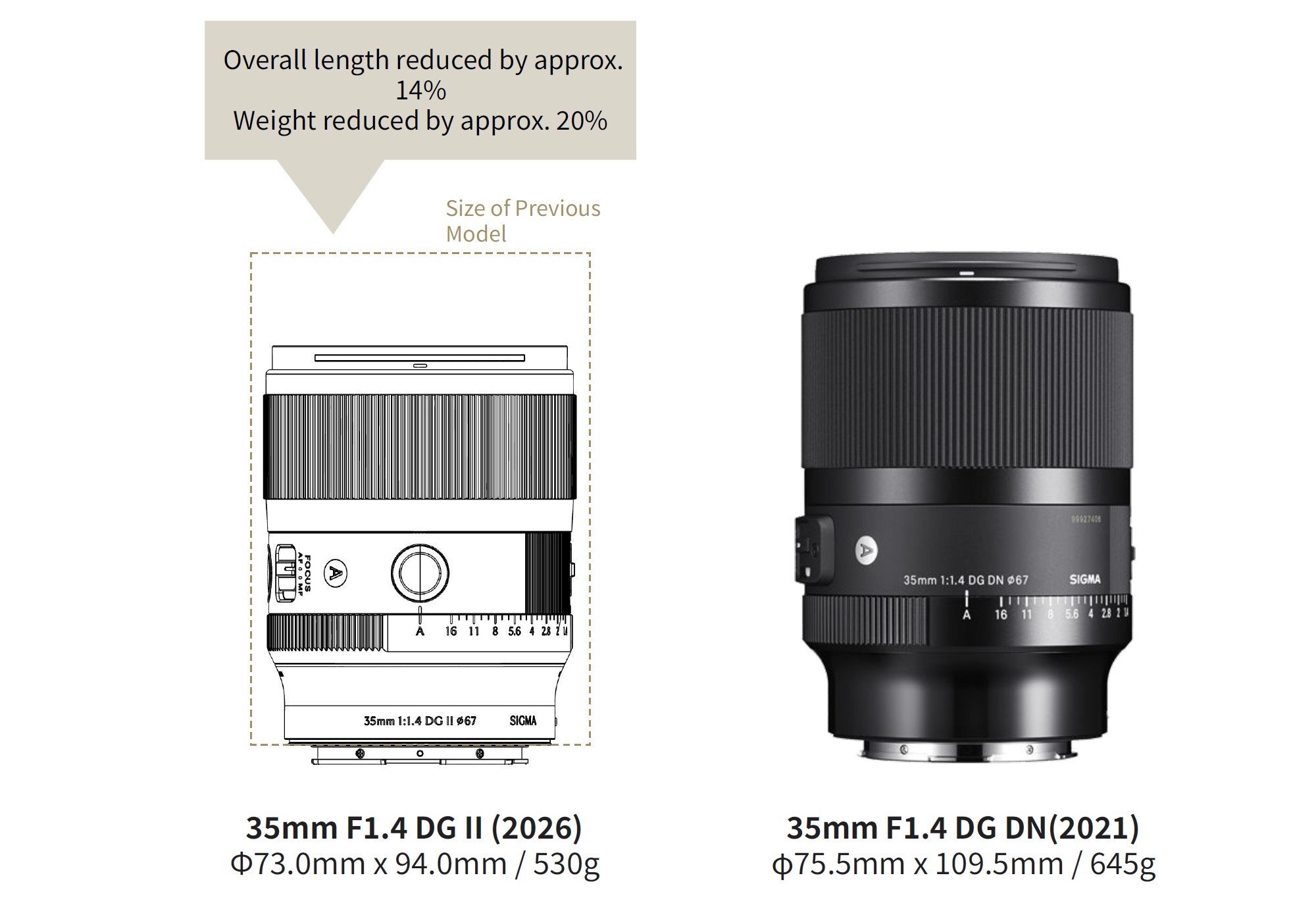 The first of Sigma’s objectives with these Mark II lens is to radically reduce the size and weight. This helpful diagram from Sigma shows just how much smaller the new lens is.