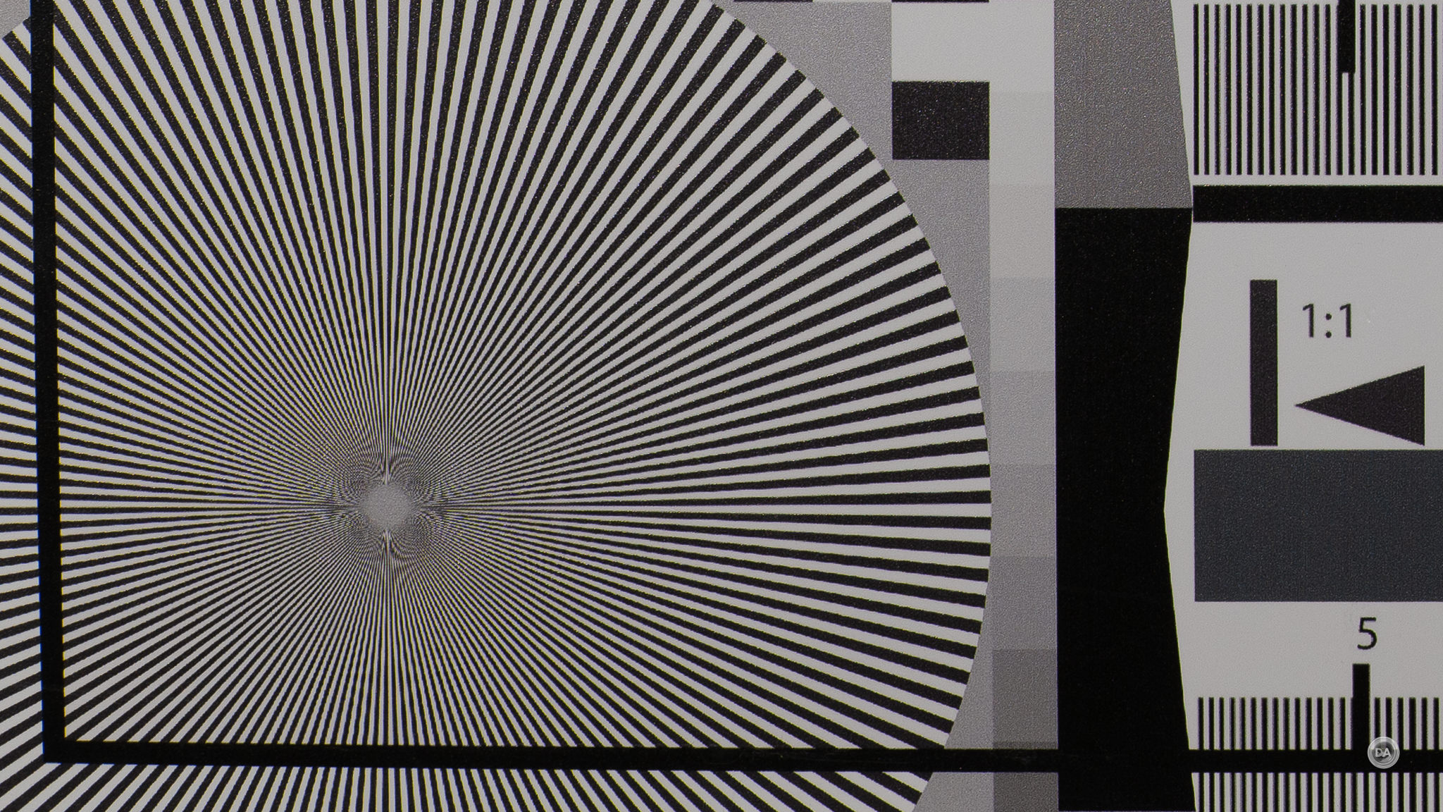 So let’s return to focus on resolution. These results are shot on a 45MP Sony a7RV and the crops are shown at roughly 200% magnification level. Here’s a look at the test chart that the crops are taken from.