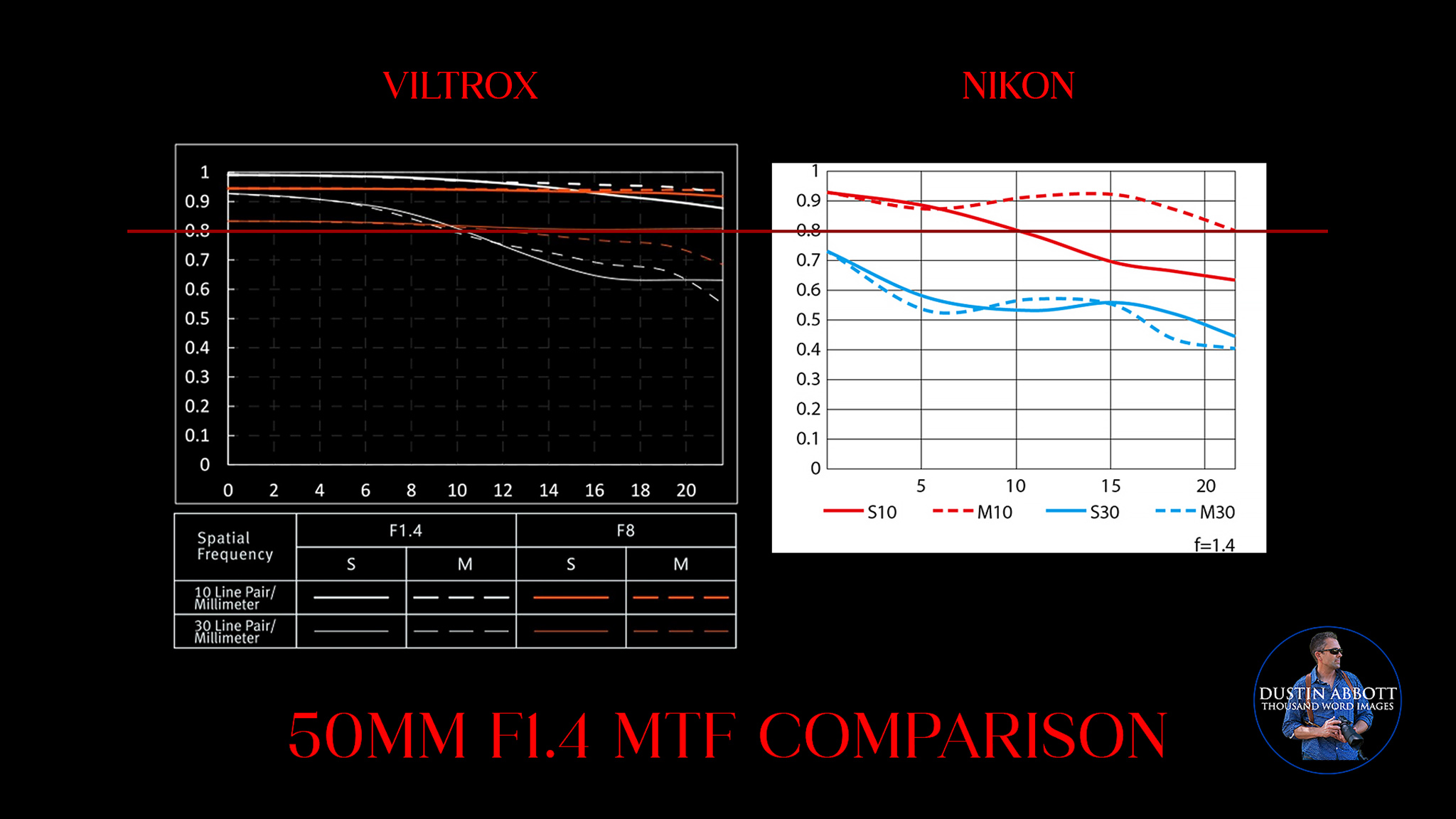 So, on paper, how does this compare to the Nikkor Z 50mm F1.4 ART? On paper, the Viltrox is definitely sharper across the frame at F1.4, with its weakest point in the corners being only slightly less sharp than the Nikon at its best in the center. In the center of the frame the Viltrox ranks about 20 points higher, and the midframe (10) is more like 25 points higher.
