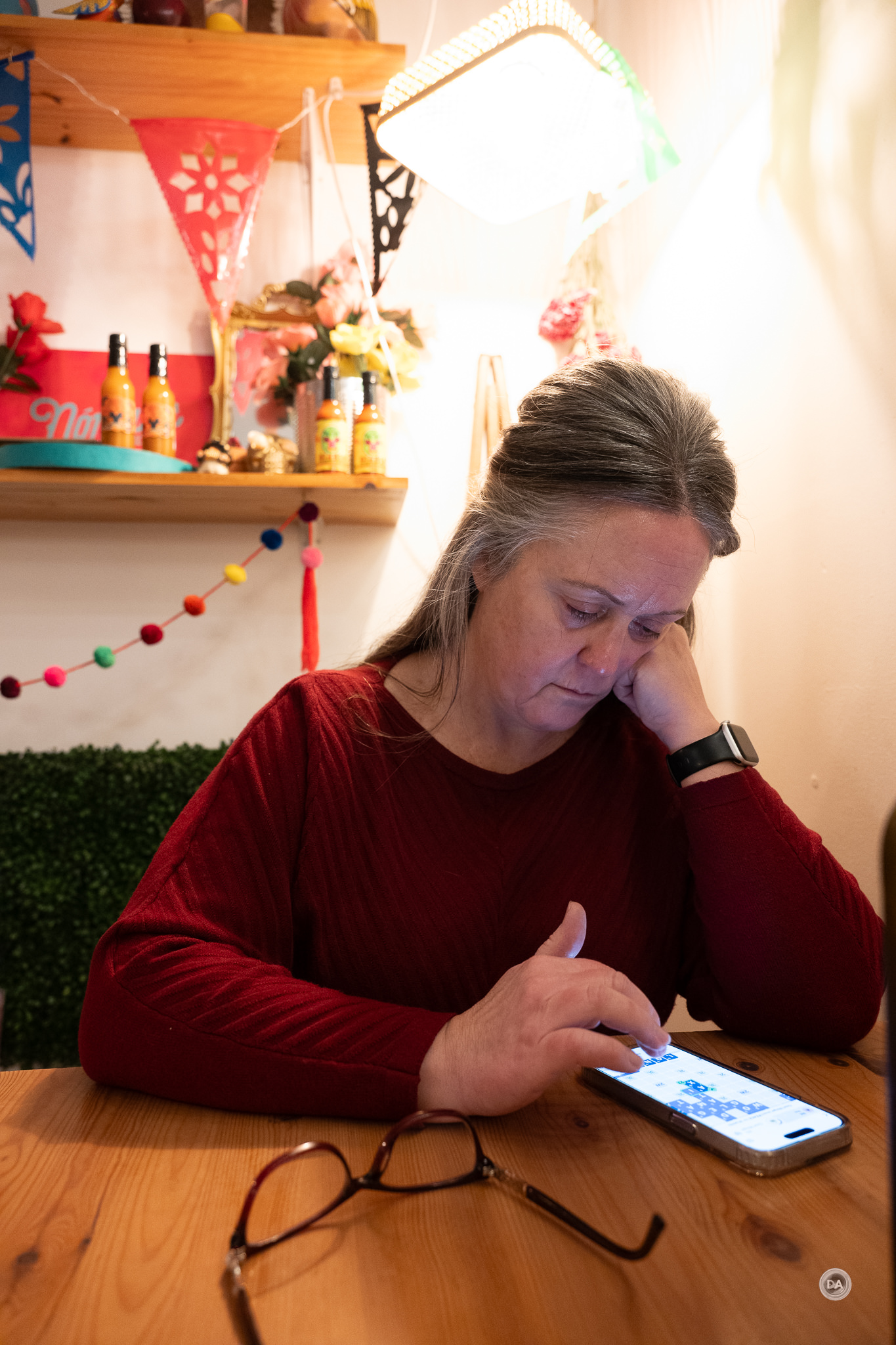 A casual shot across the dinner table shows that focus is perfectly locked on the eyes (in this case, lashes, as the eyes are downturned). Perfect for getting all of those shots of your kids of family trips while they stare at their phones!