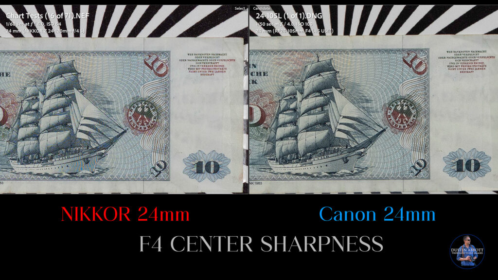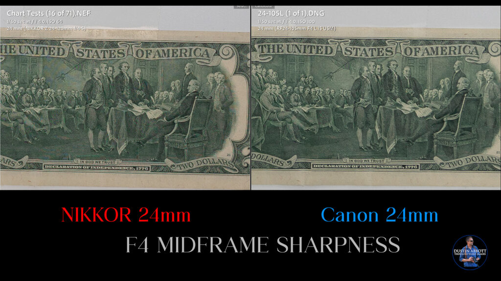 Just out of curiosity, I wanted to see how it compared to the Canon RF 24-105mm F4L IS, as the Canon EOS R5 has the identical 45MP of resolution as my Nikon Z8, making for somewhat of an apples-to-apples comparison.