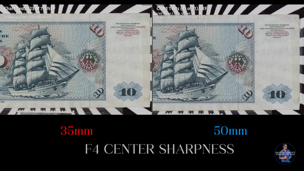 The sharpness pattern of the 35mm and 50mm focal lengths looks largely the same at other apertures, with just a bit more contrast and clarity.