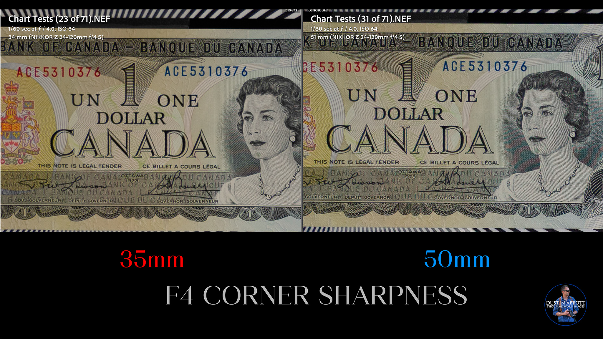 Moving on in the zoom range to 35mm and 50mm, we find that 35mm looks fantastic, with 50mm looking just slightly softer in the center and midframe, though it redeems itself in the corner, where it is sharper at F4 than we saw of 24mm at any aperture.