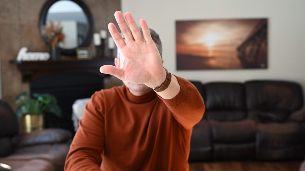 My hand test went well, with good transitions from my hand to my face and back. The low focus breathing makes those transitions seem very seamless. When I approached the camera and ducked in and out of frame, focus responsiveness was excellent. It picked me up quickly and resumed focus on my face in no more than a second.