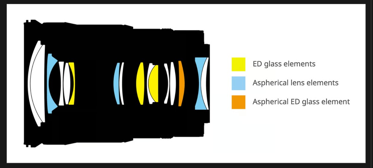 Nikon has equipped the 24-120S with an optical design of 16 elements in 13 groups (including 3 ED glass, 1 aspherical ED glass, 3 aspherical lens elements). Some elements have been treated with Nikon’s Nano Crystal Coat and ARNEO Coating to help flare resistance and aberrations.