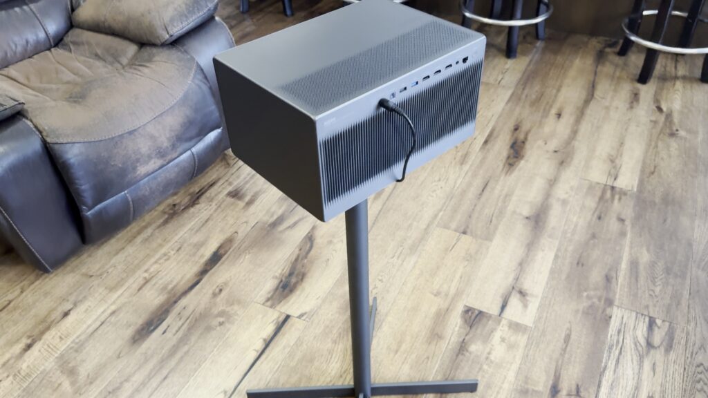 It has a massive range of optical adjustments (more on that in a moment), so it comes without the gimbal that the Horizon 20 did. I still like using the option floor stand, however, as it gets the projector up and helps hide the power cord.